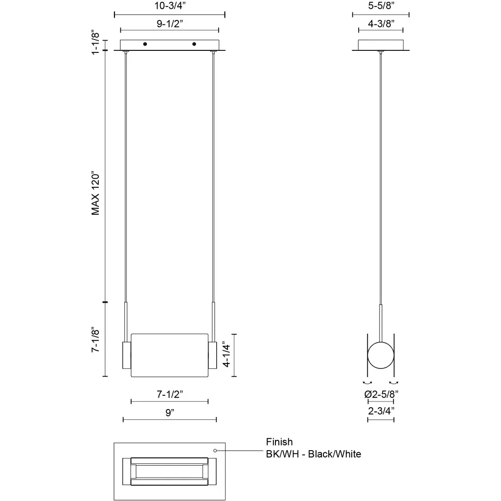 Phoenix Led 9 Inch Black And White Linear Pendant Ceiling Light