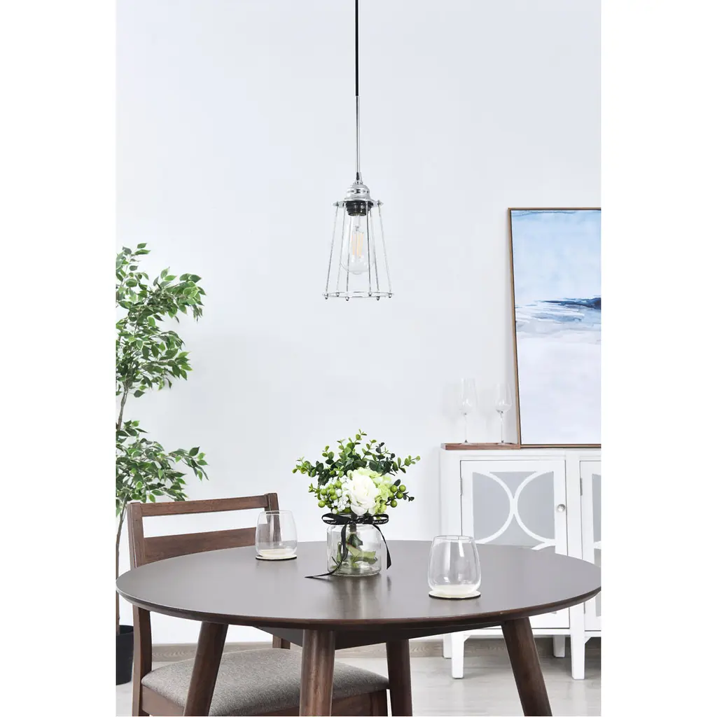 In all of its auspicious glory, the Phoenixville collection pendant lamp in a chrome finish will shine its felicitous light for you. As the light passes through the open shade, it dances around with the shadows and puts a spotlight in your room. Whether it is in your entryway, living room, or dining room, this pendant will surely please you and your guests.