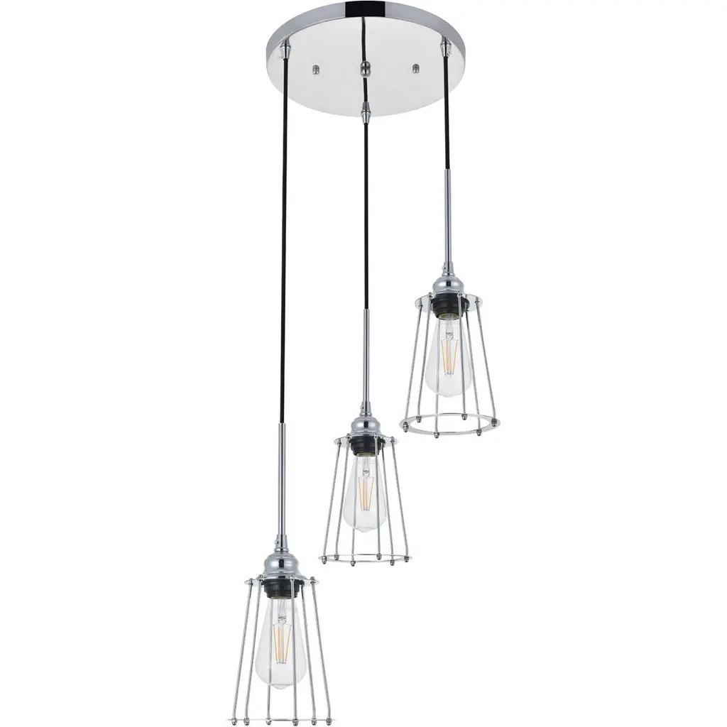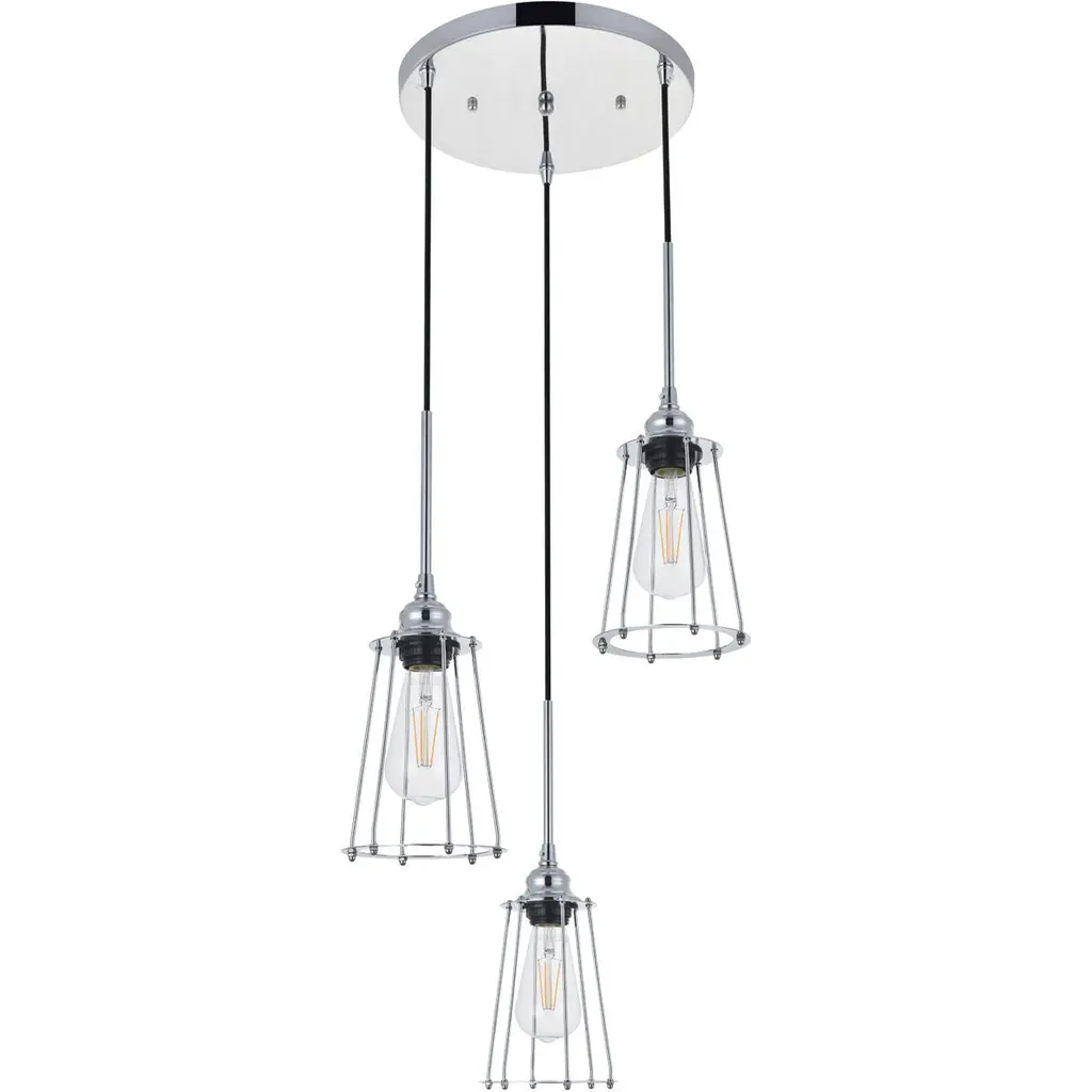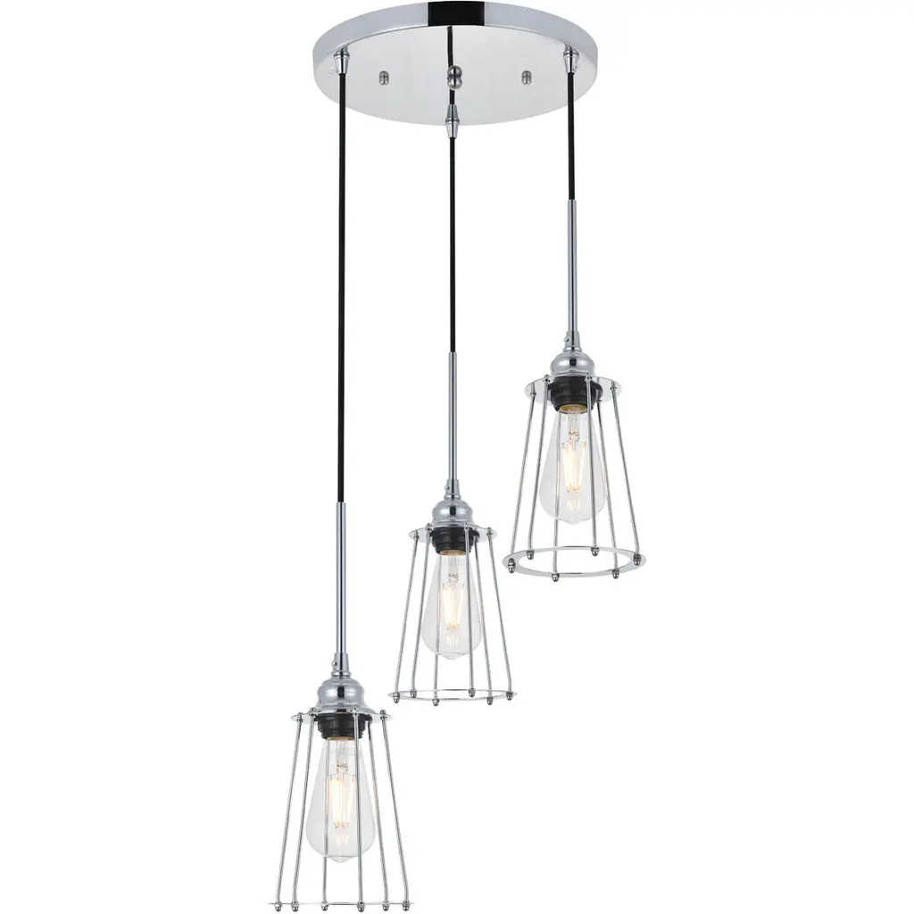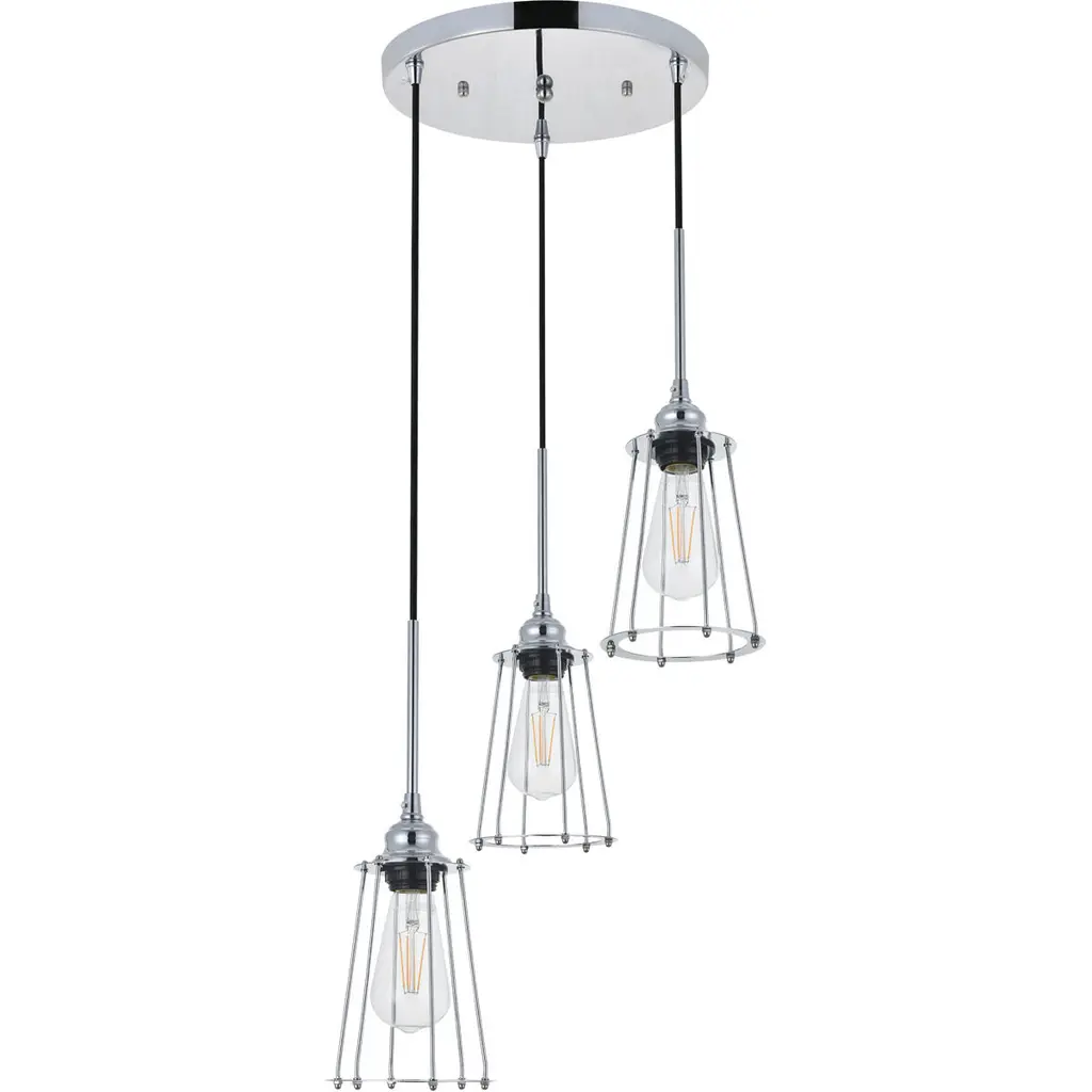In all of its auspicious glory, the Phoenixville collection pendant lamp in a chrome finish will shine its felicitous light for you. As the lights pass through the open shades, they dance around with the shadows and put a spotlight in your room. Whether it is in your entryway, living room, or dining room, this grouping of 3-light pendant will surely please you and your guests.