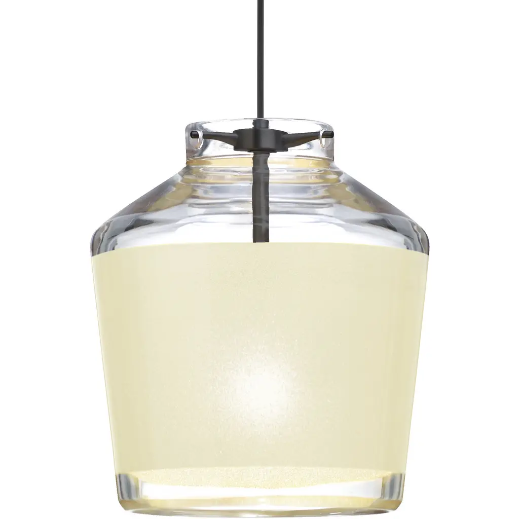 Pica 6 is a compact tapered glass with a broad angled top and a chamfer-cut bottom, its retro styling will gracefully blend into today's environments. The White Sand décor begins with a clear blown glass, with glossy outer finish. We then, using a handcrafting technique, carefully apply a band of actual fine-grained sand to the inner surface of the glass, where white colour is fully saturated into the coating for a bold statement. A final clear protective coating is applied to seal and preserve the accent material. The result is a beautifully tetured work of art, comfortable with the irony of sand being applied to a glass that orinates from sand. When illuminated, the colors shimmers through the noticeable refractions created by every granule, as the sand patterning is obvious and pleasing. The 12V cord pendant fixture is equipped with a 10' braided coaxial cord with teflon jacket and a low profile flat monopoint canopy. These stylish and functional luminaries are offered in a beautiful Black finish.