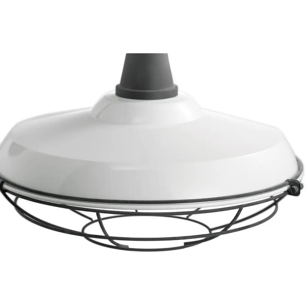 The caged design of the Pier 1 light outdoor convertible pendant/semi flush mount in White offers the vintage outdoorsy look, while the bright white interior enhances and reflects the light for essential nighttime illumination.