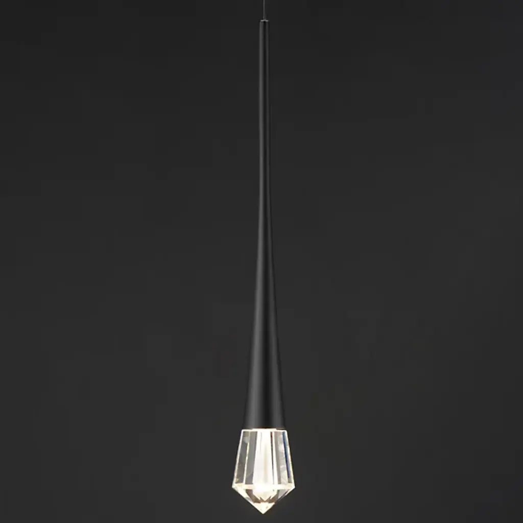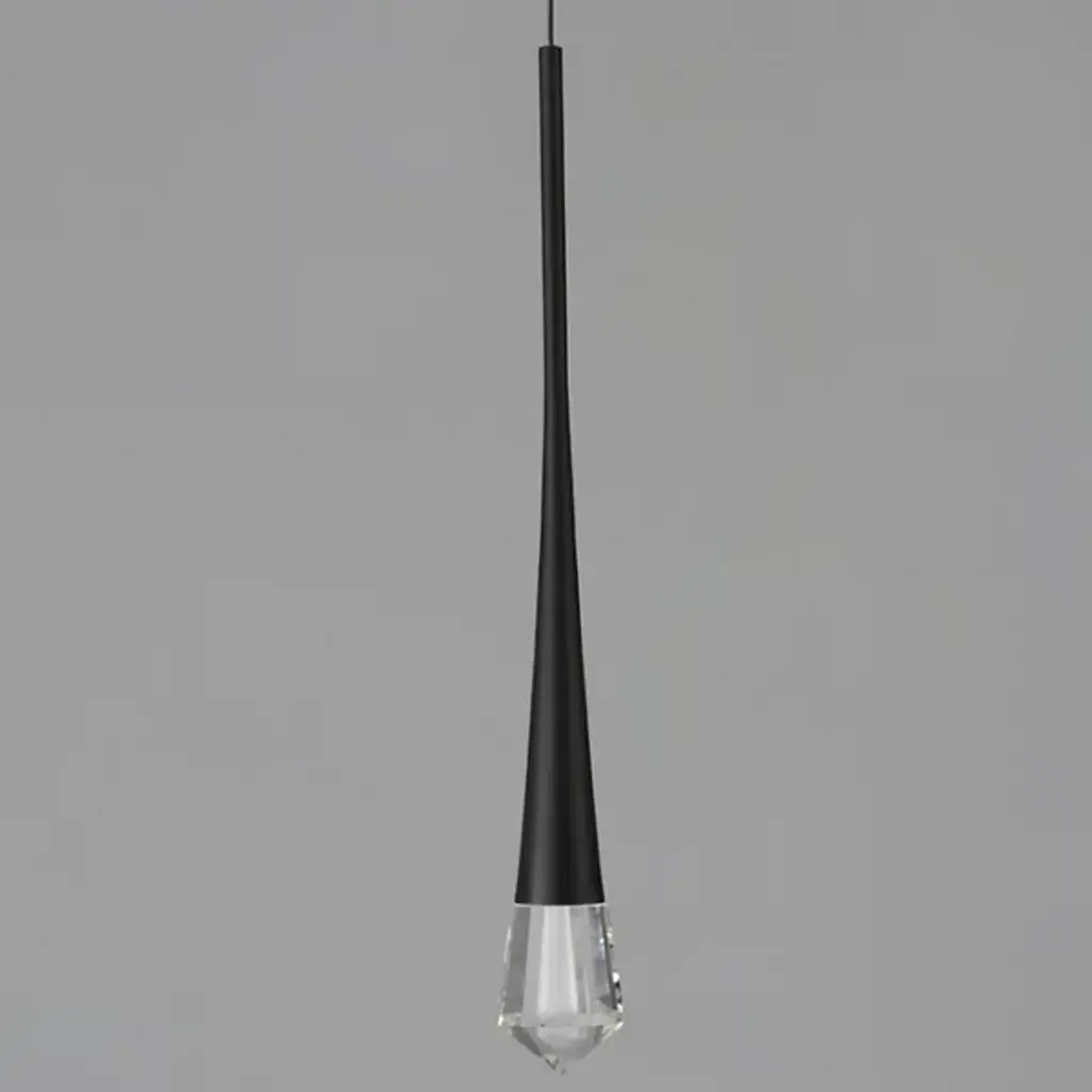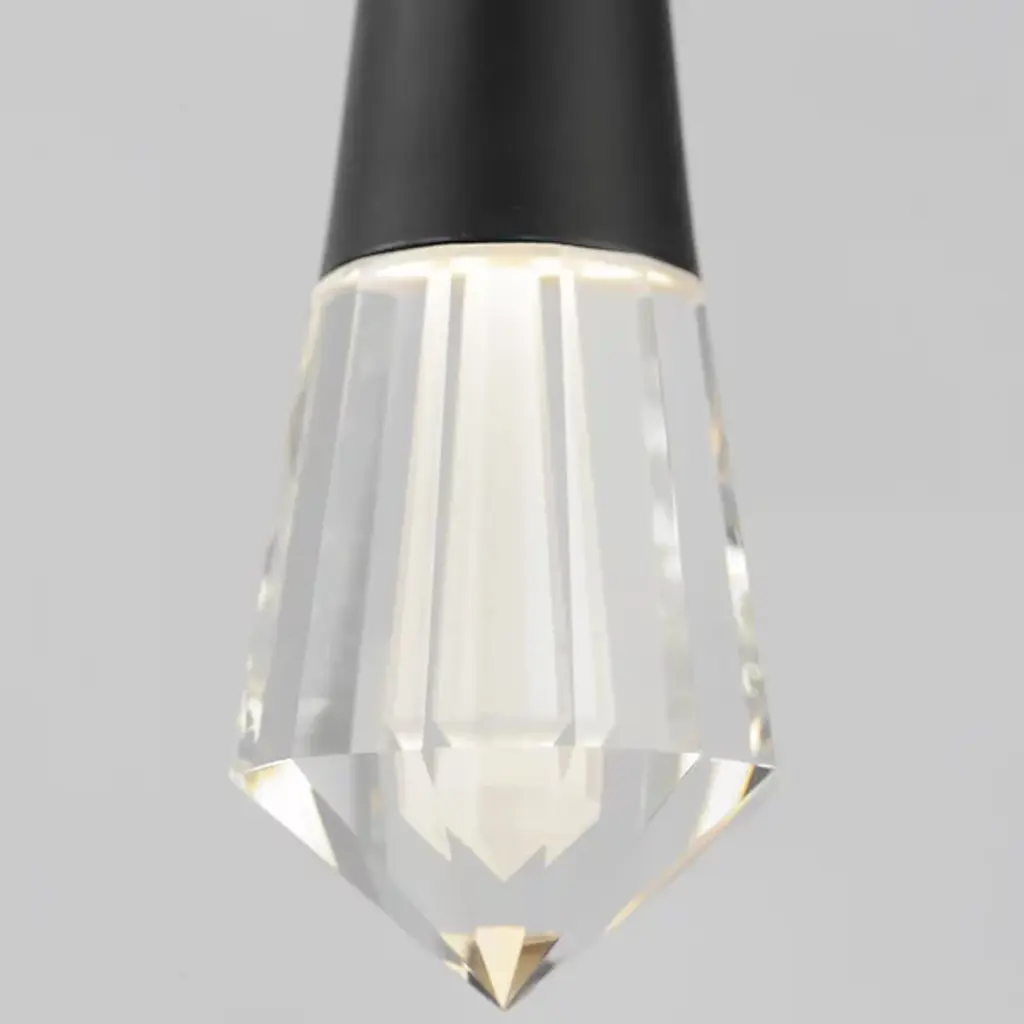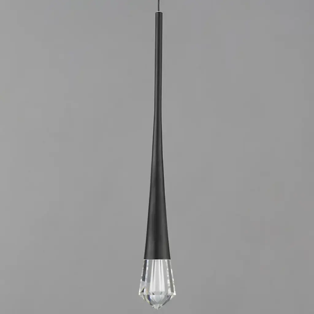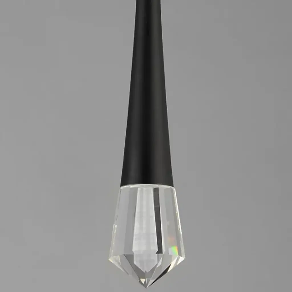 An elongated profile with a piercing statement, the Pierce Mini Pendant from ET2 Lighting features thin black wires that support a tapered metal pendant. Recessed in this form is a high-powered LED that illuminates a brilliantly faceted crystal element with etched details inside its form to capture light and enhance its beauty. The design complements both modern and many transitional interiors. A coordinating ADA-compliant wall sconce was designed with a rigid stem for public spaces and has been sealed for use in damp locations.