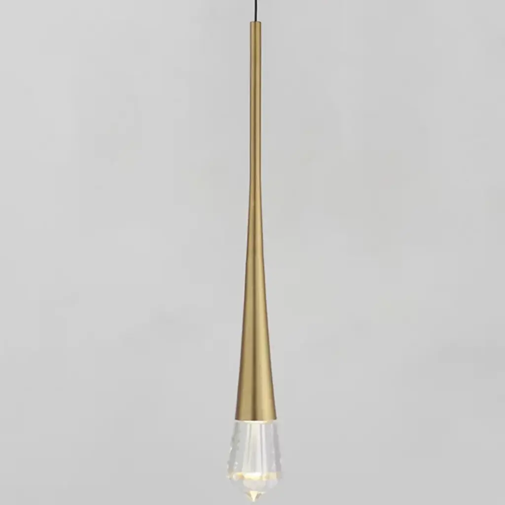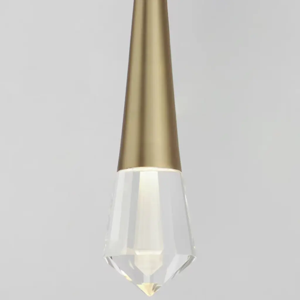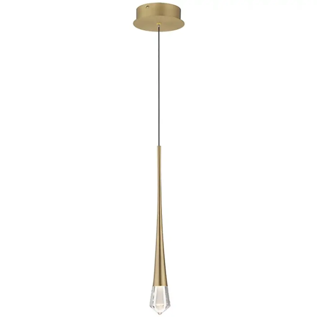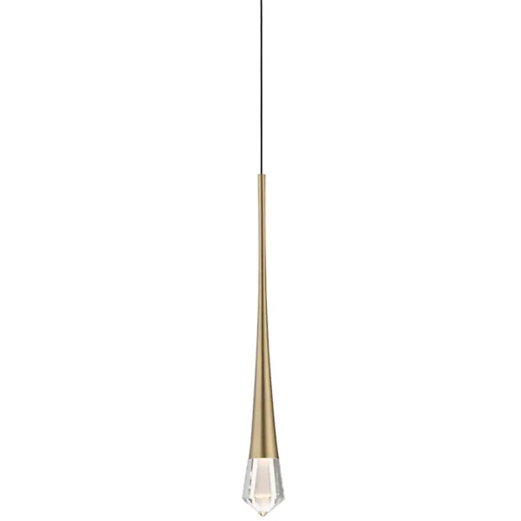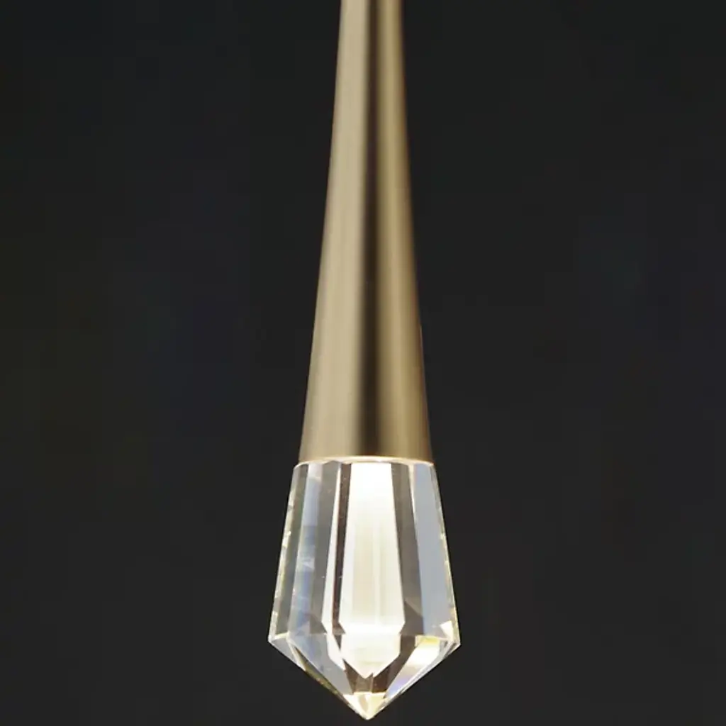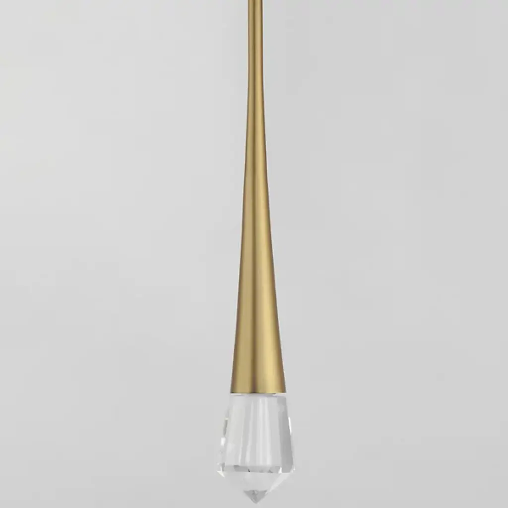 An elongated profile with a piercing statement, the Pierce Mini Pendant from ET2 Lighting features thin black wires that support a tapered metal pendant. Recessed in this form is a high-powered LED that illuminates a brilliantly faceted crystal element with etched details inside its form to capture light and enhance its beauty. The design complements both modern and many transitional interiors. A coordinating ADA-compliant wall sconce was designed with a rigid stem for public spaces and has been sealed for use in damp locations.