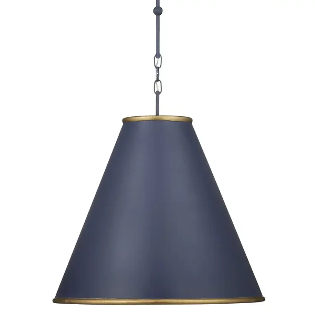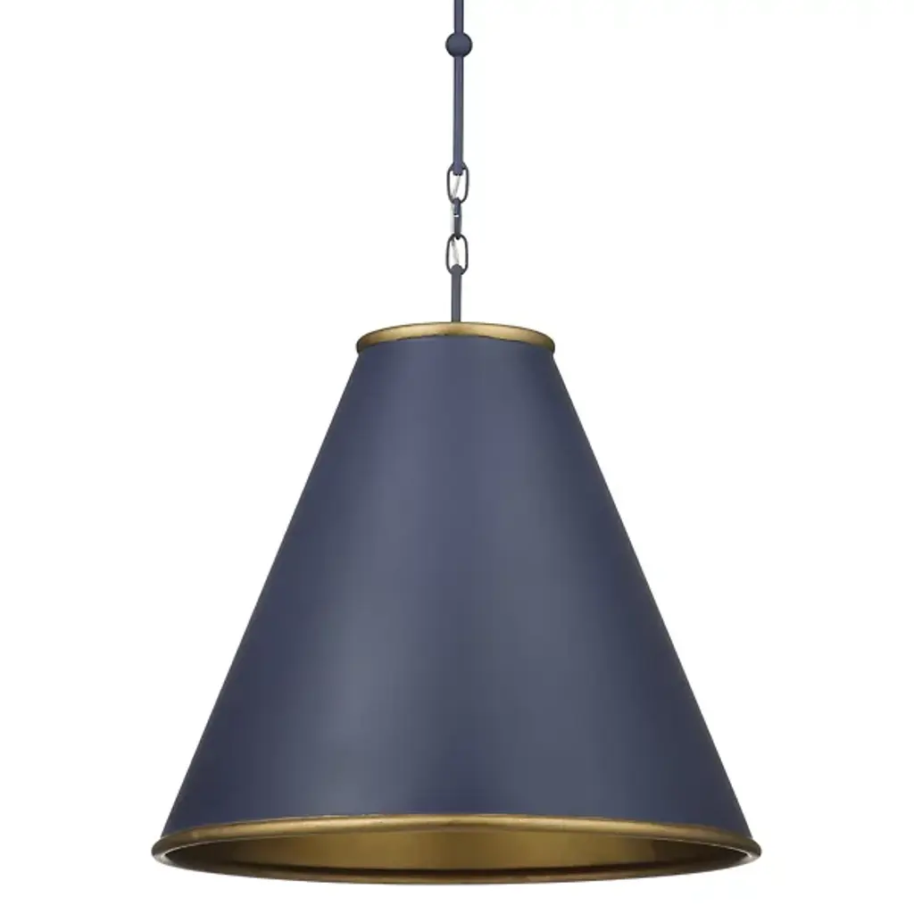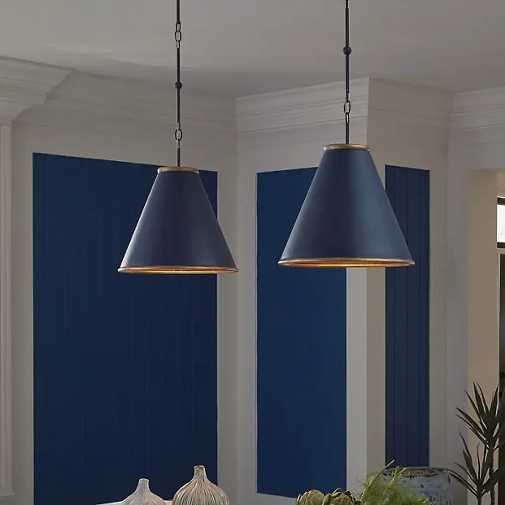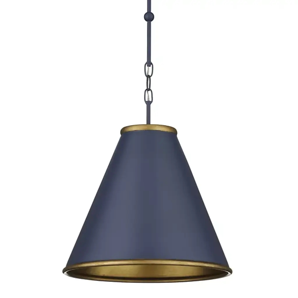Place a powerful statement in your space with the simple build and striking lines of the Pierrepont Pendant from Currey & Company. A clean canopy sends down a slender metal stem accented by a single small sphere, connecting to the top of a downward-facing, wrought iron conical with a smoothly-surfaced interior that amplifies the lamping set within. Its exterior is accented with clean-textured rings that shine with reflected light, contrasting with the matte body that appears to absorb any excess glare.