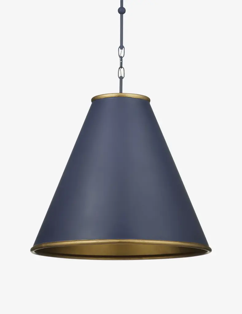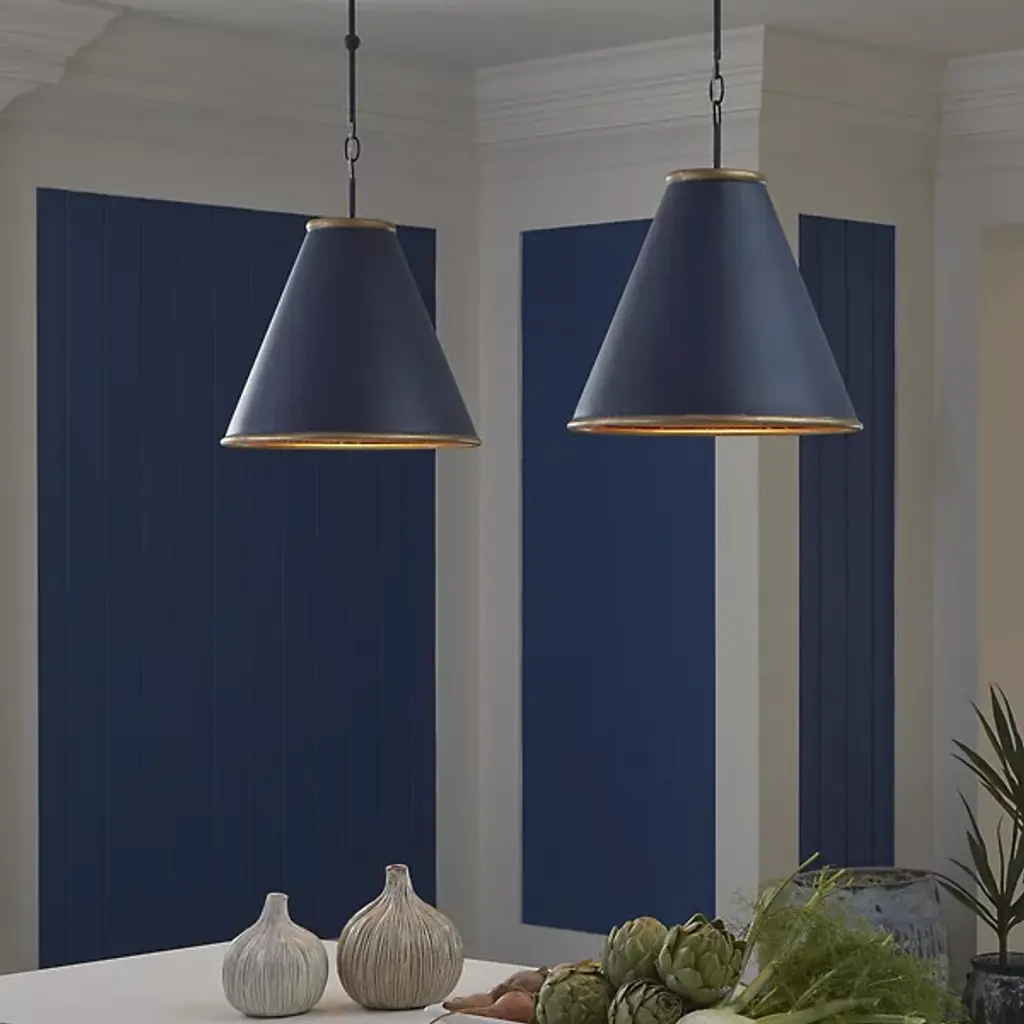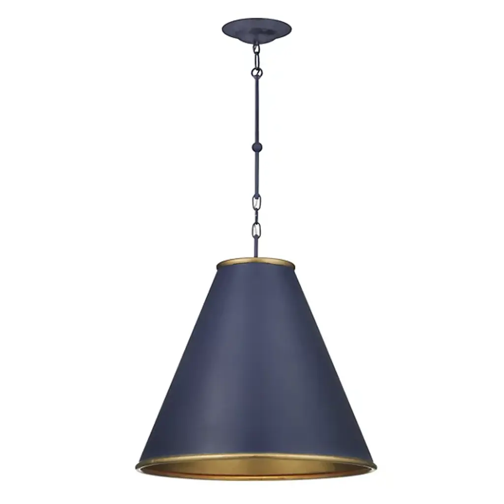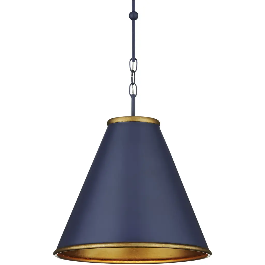 Place a powerful statement in your space with the simple build and striking lines of the Pierrepont Pendant from Currey & Company. A clean canopy sends down a slender metal stem accented by a single small sphere, connecting to the top of a downward-facing, wrought iron conical with a smoothly-surfaced interior that amplifies the lamping set within. Its exterior is accented with clean-textured rings that shine with reflected light, contrasting with the matte body that appears to absorb any excess glare.