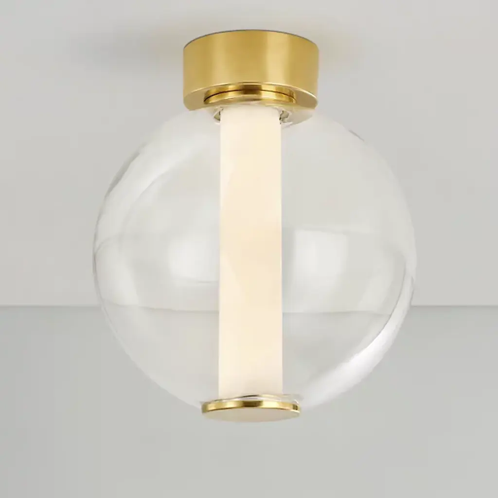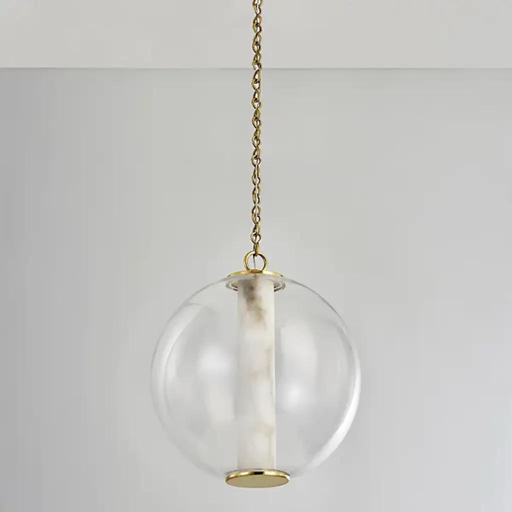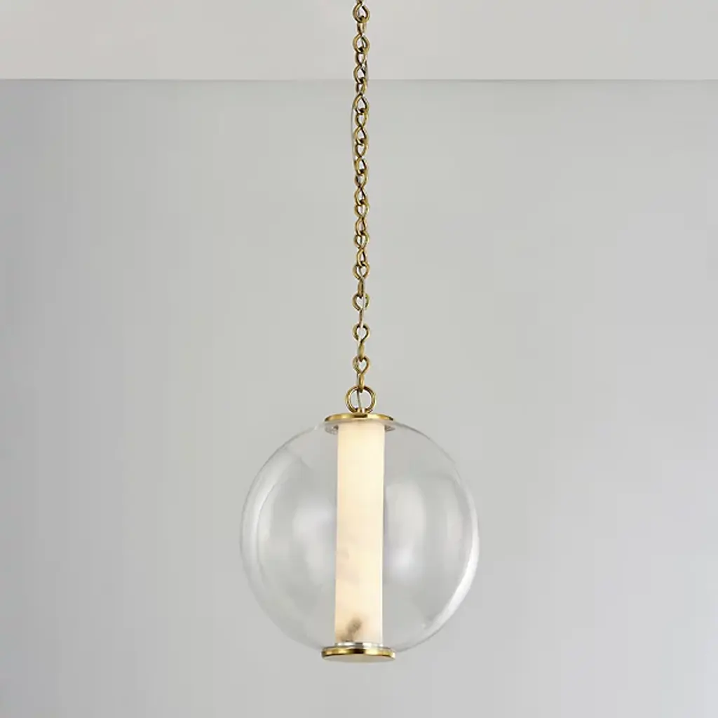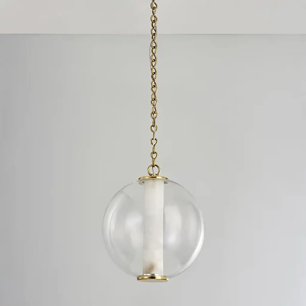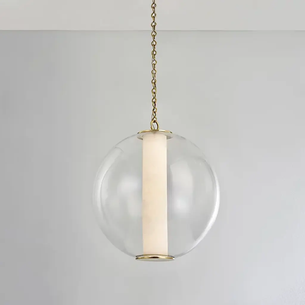 Presented by Corbett Lighting, the Pietra LED Pendant is a transitional piece of luxury lighting design. It also has mid-century modern influences throughout the composition, featuring a vintage brass frame and finish with white alabaster diffusion at the center. Integrated LED allows for a low eco-footprint via a long lifespan and less energy consumption than the standard lighting unit. The elegance is unmistakable in Pietra’s look and feel, allowing for it to elevate spaces with ease.