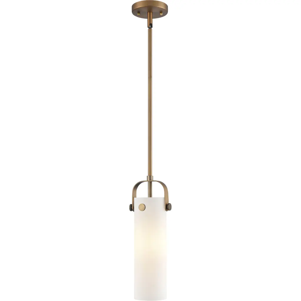 Pilaster Ii Cylinder 1 Light 5 Inch Brushed Brass Pendant Ceiling Light In Matte White Glass