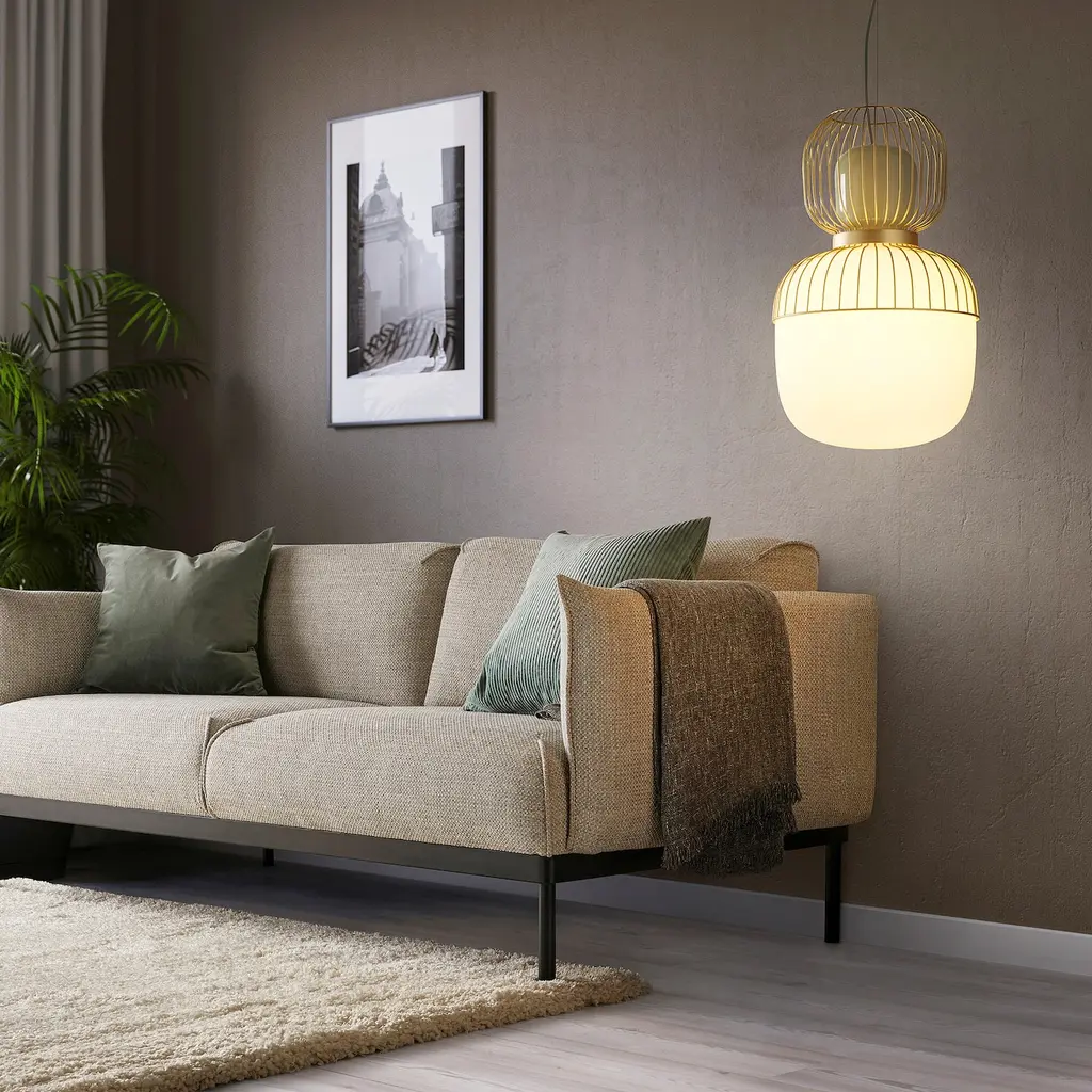 PILBLIXT Pendant lamp - white/light green glass/gold effect metal 13 ". If you want to be able to easily change the brightness according to mood and needs, you can dim the lamp wirelessly if you complete with TRÅDFRI dimmer kit. Sold separately. Hardwired installation. Mounted with screws.