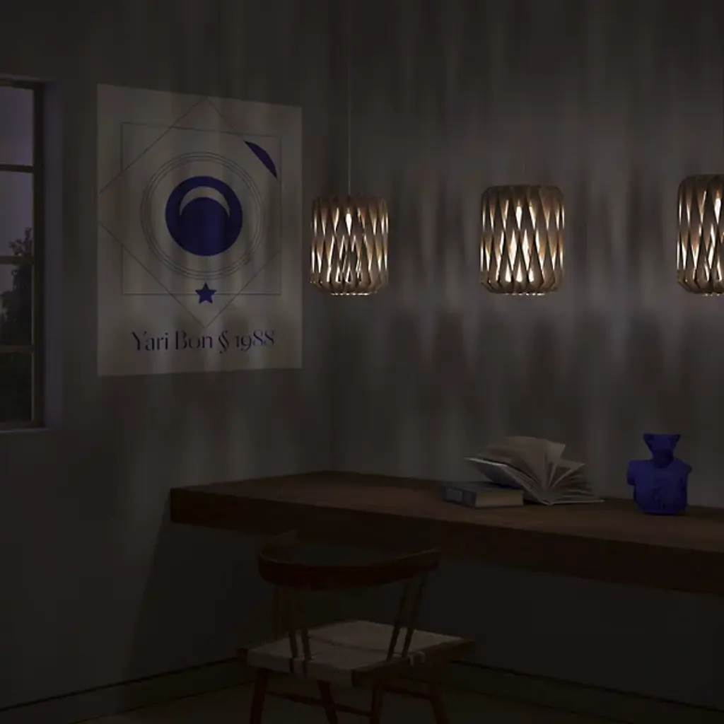 Intricate design and natural material compose the Pilke Barrel Mini Pendant by Pilke Lights. The cylindrical fixture lends a highly contemporary feel to elevate a space’s décor while casting a warm layer of light. From designer Tuuka Halonen, this pendant is inspired by traditional Finnish shingle work, with plywood forming a delicately ornate diamond motif around its central lamping. Translating to “twinkle” in Finnish, Pilke’s unique design allows its light to glisten elegantly through the shade’s openings.