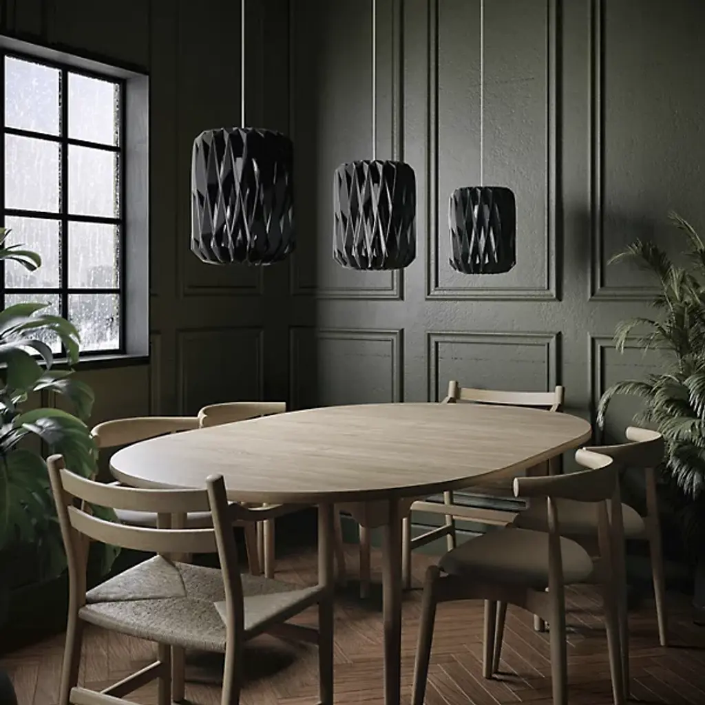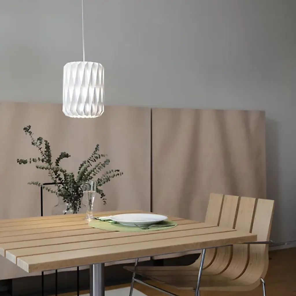 Intricate design and natural material compose the Pilke Barrel Mini Pendant by Pilke Lights. The cylindrical fixture lends a highly contemporary feel to elevate a space’s décor while casting a warm layer of light. From designer Tuuka Halonen, this pendant is inspired by traditional Finnish shingle work, with plywood forming a delicately ornate diamond motif around its central lamping. Translating to “twinkle” in Finnish, Pilke’s unique design allows its light to glisten elegantly through the shade’s openings.