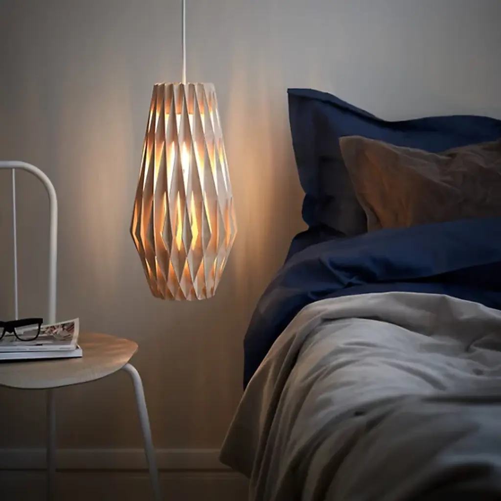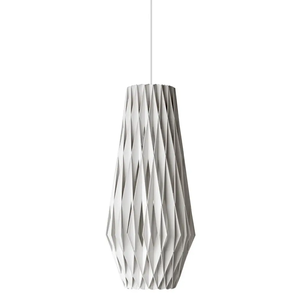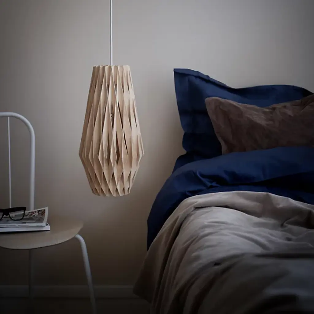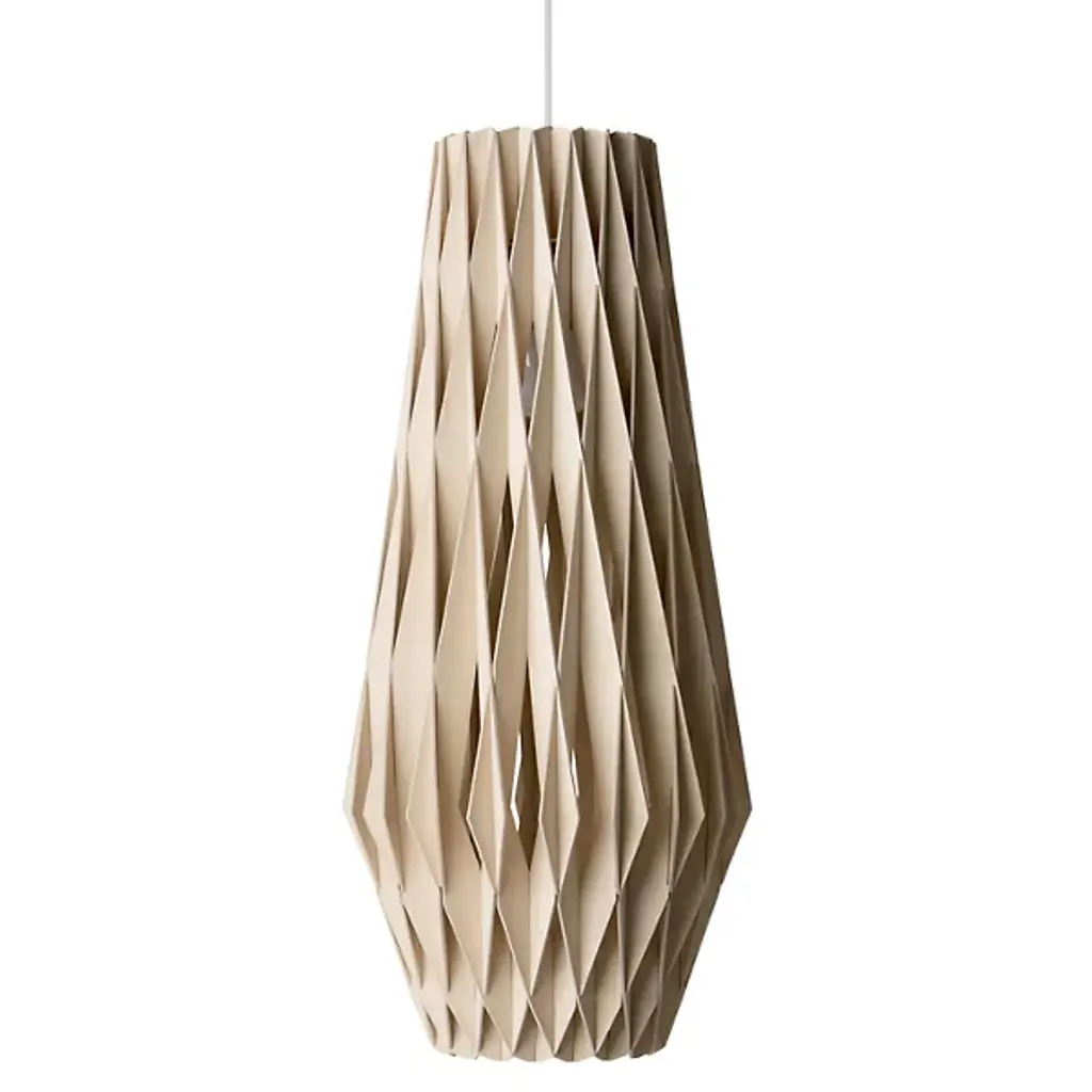 An expressive, enchanting piece, the Pilke Bell Pendant from Pilke Lights brings a simple, yet elegant form to contemporary spaces. Blending traditional Finnish handicraft style and ultramodern, computerized geometry, this fixture is made of numerous plywood slats, each smoothly interlocked to form a playful, eye-catching body. A single light within the slats illuminates the individual pieces, creating a unity of shadow and light as the clean, warm glow invites a relaxing atmosphere to your home.