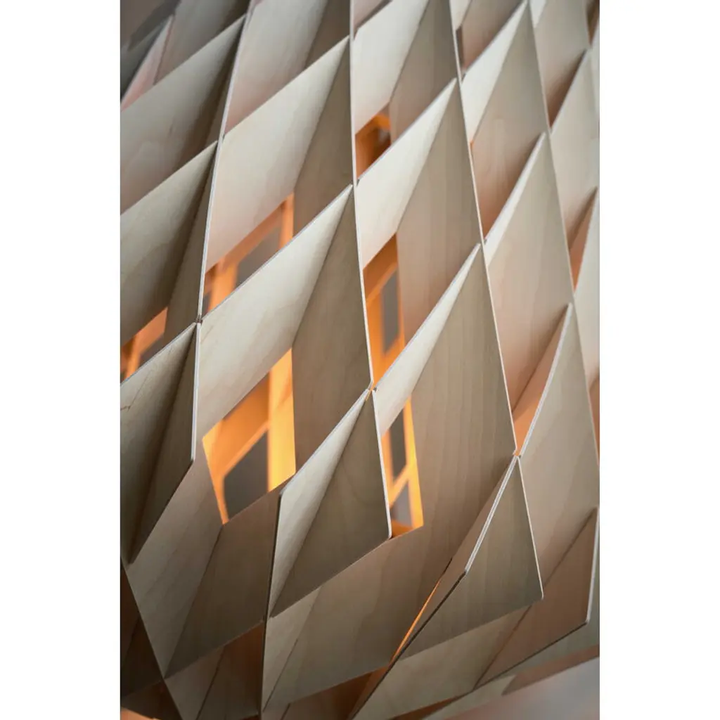 The Pilke 64 pendant by Pilke Lights provides an atmospheric glow to any space. As you might have guessed by the luminaire's name, the Pilke 64 pendant light has a diameter of 25.2 x 0 in (64 x cm, cm), making it ideal for residential living spaces but also for a variety of public locations from offices to restaurants and hotel lobbies. Pilke 64 is part of the simple yet ornamental Pilke Signature Collection designed by Tuukka Halonen. Crafted from birch plywood, the Pilke luminaires are an enchanting combination of technology and tradition: Halonen sought influences for the design from traditional Finnish wood crafts but utilized today’s manufacturing methods and materials. As a contemporary interpretation of shingle work, the lamps are characterized by a crystal-like pattern that filters the light pleasantly and casts beautiful shadows on the walls and ceiling. All wooden Pilke lamps are designed and handcrafted in Finland.
