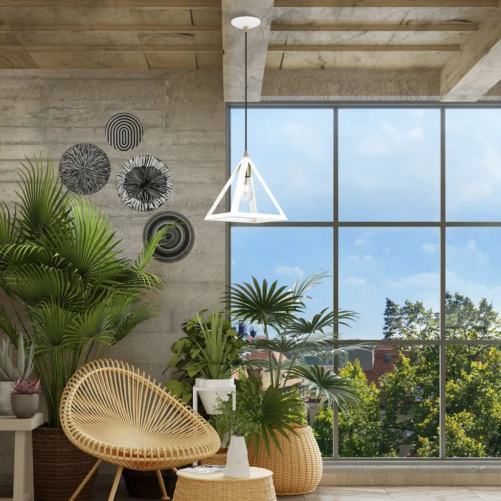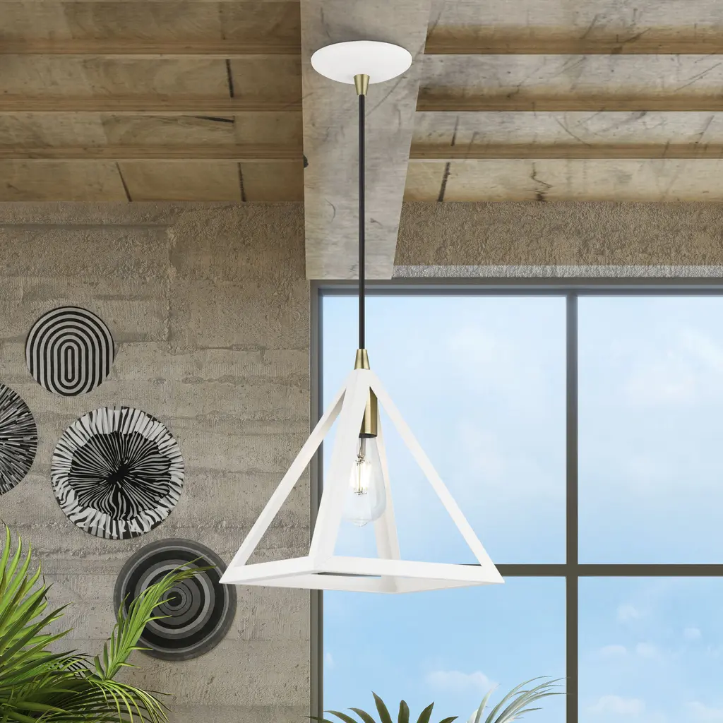 Pinnacle 1 Light 10 Inch Textured White With Antique Brass Accents Pendant Ceiling Light