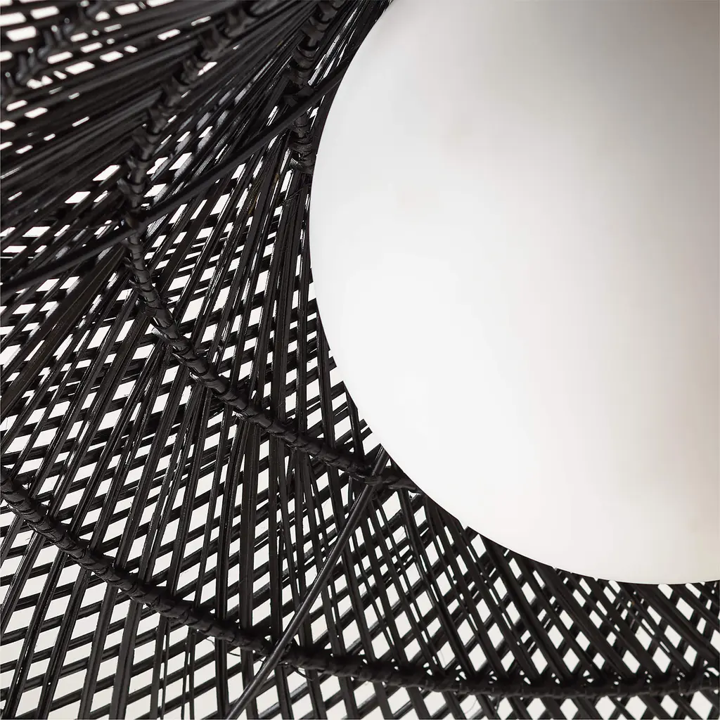 Coconut ribs sourced in the Philippines fan out in a handwoven chandelier. Larger in scale with a central glass globe that casts soft, warm light—an elevated way to introduce natural materials above the dining table. CB2 exclusive.