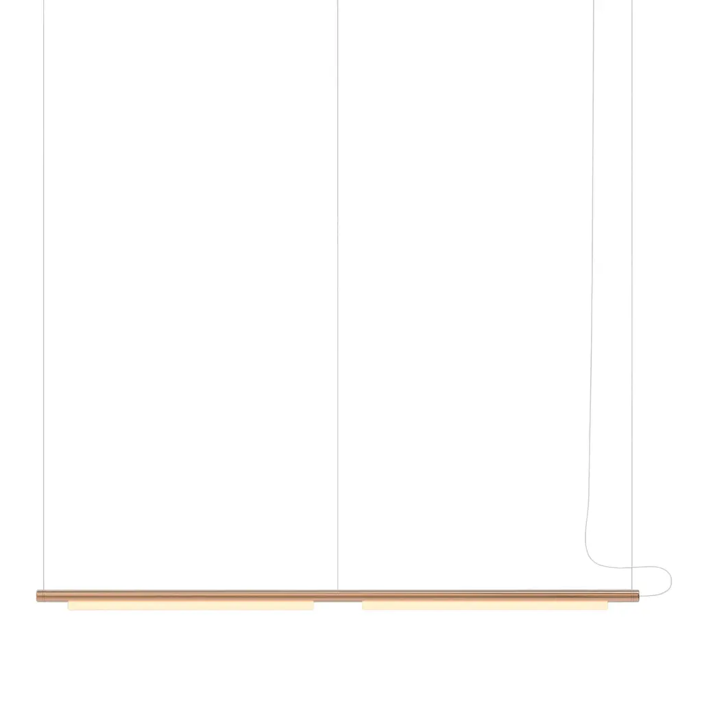 A-N-D’s double-light LED pendant, like its siblings in the linear series, seemingly floats on air, suspended by 1-millimeter-thin aircraft cable. Pipeline 125.2 uniformly emits straight beams of light through its specially developed diffusers, to both soften the illumination and maximize output. In a range of metal finishes and color temperatures, the pendant can be suspended horizontally level or at angles, individually or in multiples.