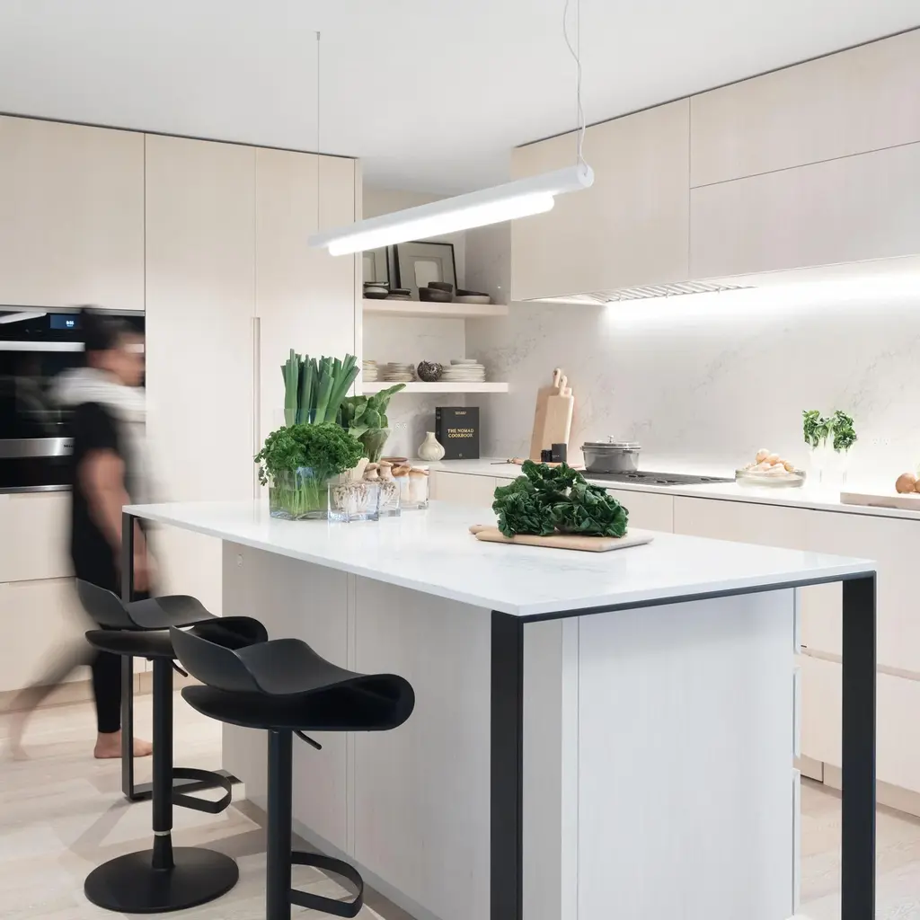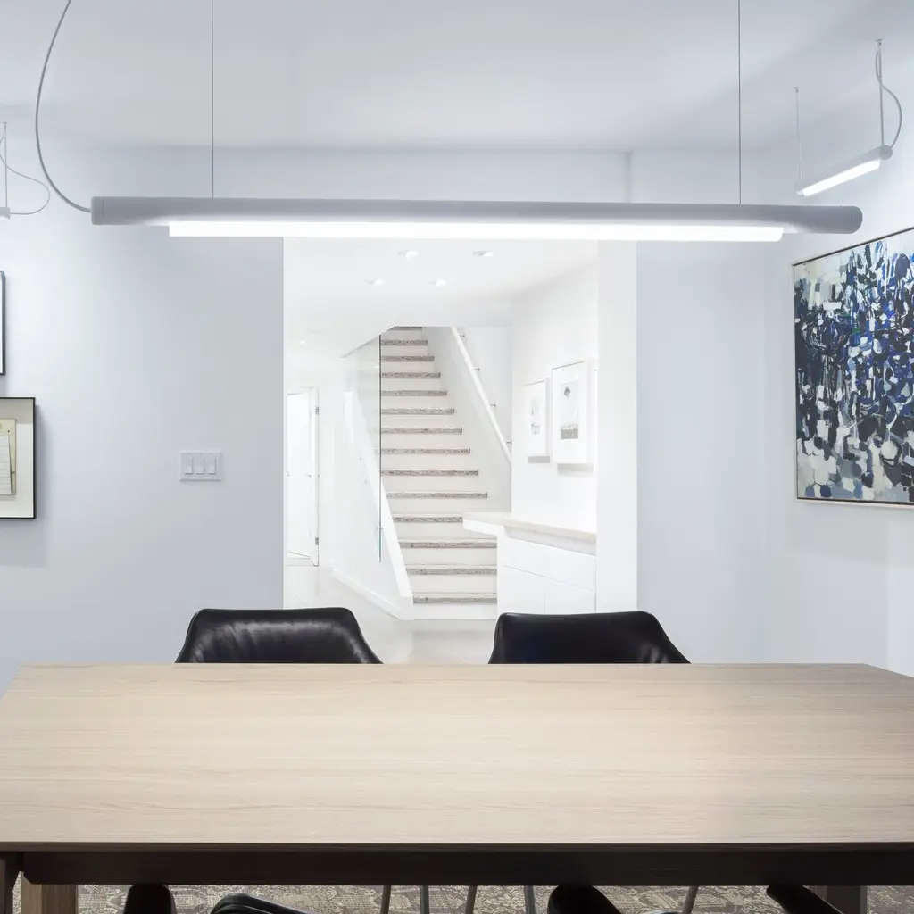 Vancouver-based designer and A-N-D cofounder Caine Heintzman takes the most prosaic of materials as inspiration for his Pipeline 125 Pendant. The linear LED fixture supersedes its ordinary origins in a range of fine finishes while providing evenly diffused soft light—and as part of the modular collection can be combined for custom installations.