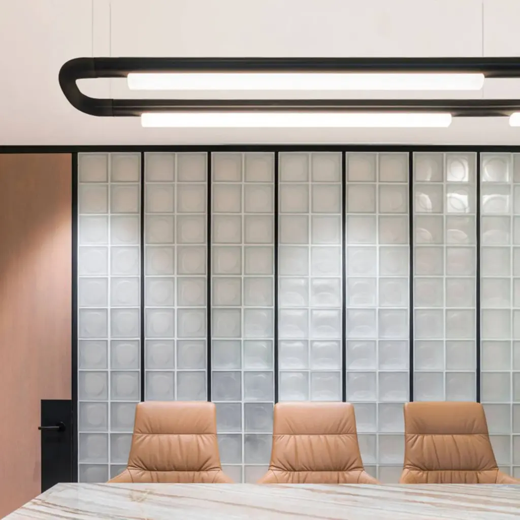 CM8 configures the Pipeline linear pendant as a rectangular formation with LED sections on all 4 sides with graceful rounded corners. Eminently viable on its own, A-N-D cofounder and designer Caine Heintzman conceived this series as individual modular units that also can be combined to meet customized room specifications.