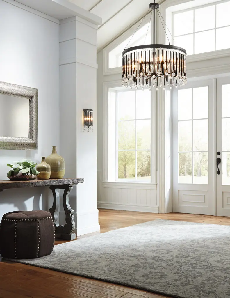 Piper 6 Light Chandelier/Pendant mixes modern with femininity with its delicate glass bead accents. Making this a focal point in any modern room is the linear detail in the clear glass and metal rods finished in Espresso.