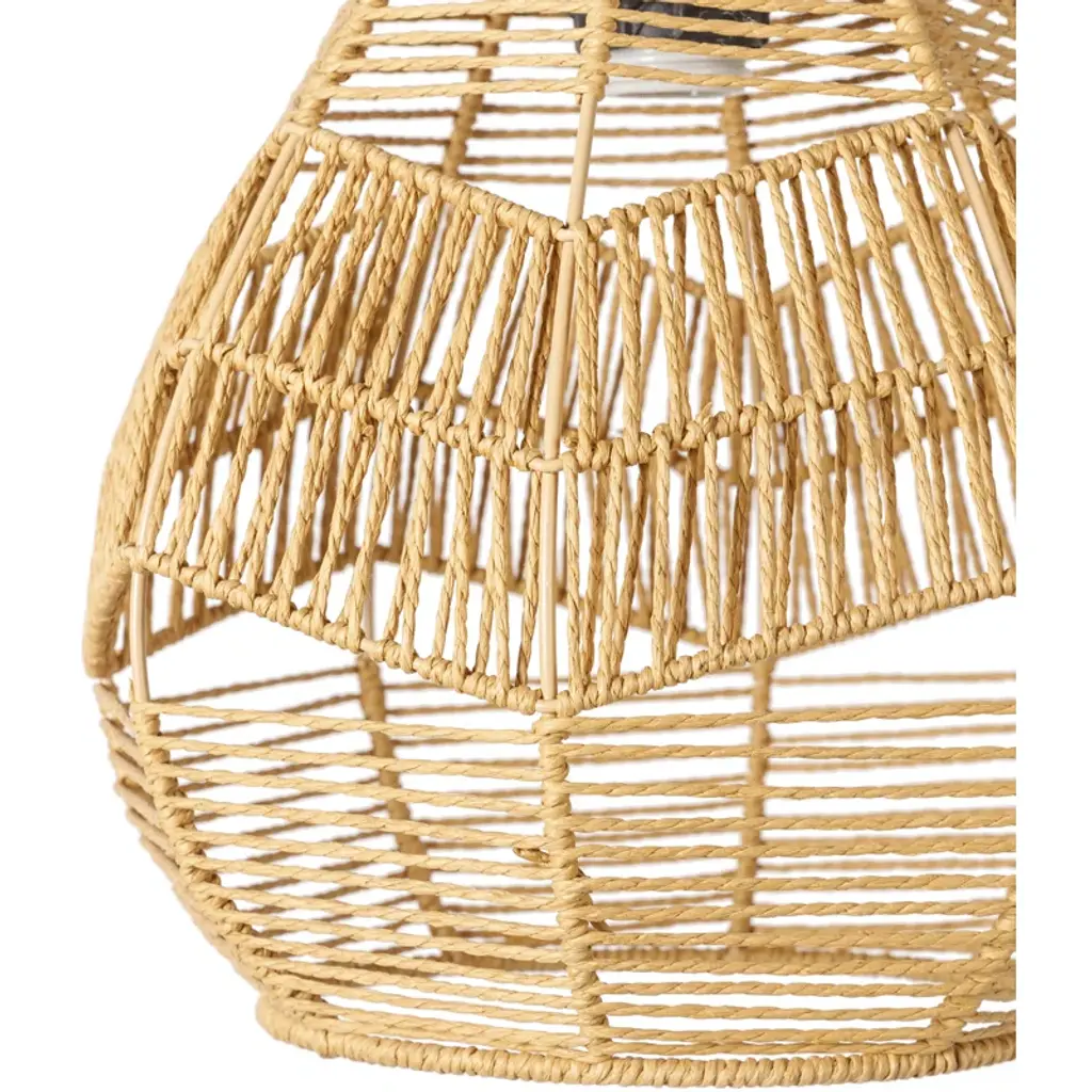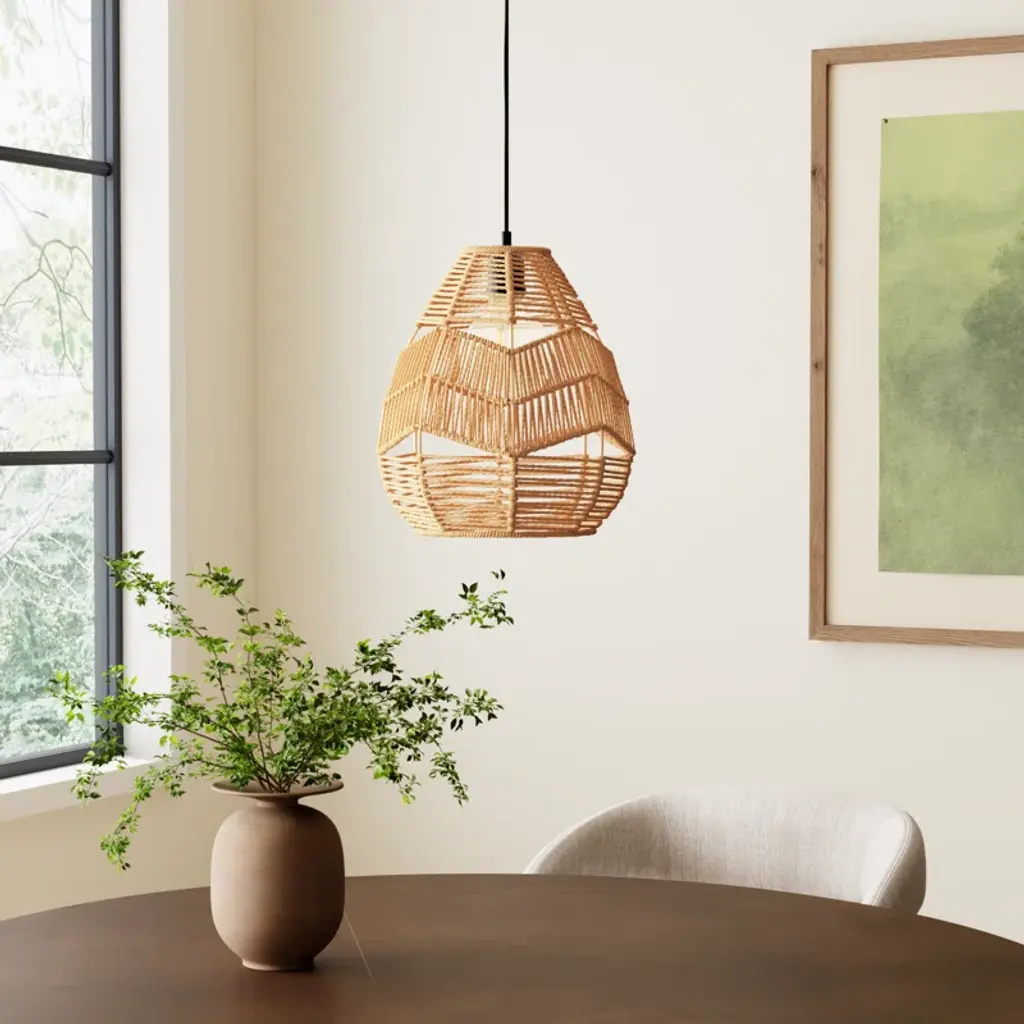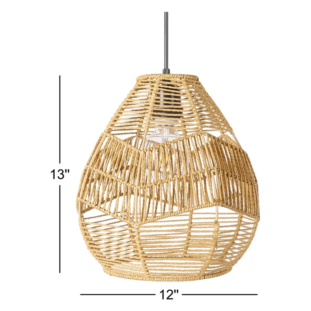 Showing off beautifully woven patterns and ravishing texture, this pendant light embodies rustic style. The perfect complement to the farmhouse, cottage, and coastal rooms. This light fixture casts a warm glow for a soothing ambiance. Crafted with paper in a natural color tone, this accessory is filled with rustic charm. Made in China and UL/CUL certified with an 8’ hanging cord. For optimal product care, wipe clean with a soft cloth.