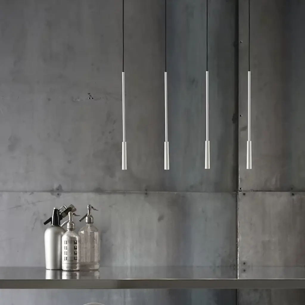 A characteristically clear and simple design. Created by Dani Vila and Ester Pujol, the Pippet LED Mini Pendant from Carpyen shines a direct spot of light beneath a tall and slim frame with a brilliant efficacy. The tactical lighting solution resembles a spyglass telescope, focusing the bright LED light in a manner that can transcend pure task lighting; if suspended in a higher position, the Pippet can provide diffused accent lighting above kitchen islands, bars or dining areas.