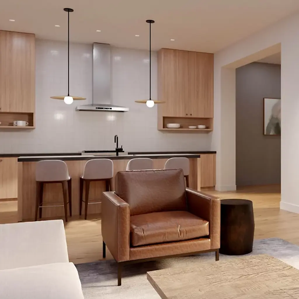 Visual Comfort Modern, formerly known as Tech Lighting,’s Pirlo Pendant provides interior living spaces with a warm and encompassing aura of illumination while retaining its slim and simplistic form factor. The fixture’s most obvious feature is its 22-inch diameter shade, which is created from a metallic material and built to direct light downwards in a soft yet focused type of light. The fixture also utilizes a frosted glass globe which works with the internal lamping in creating its distinctive lighting suitable for use in contemporary residential and commercial spaces.