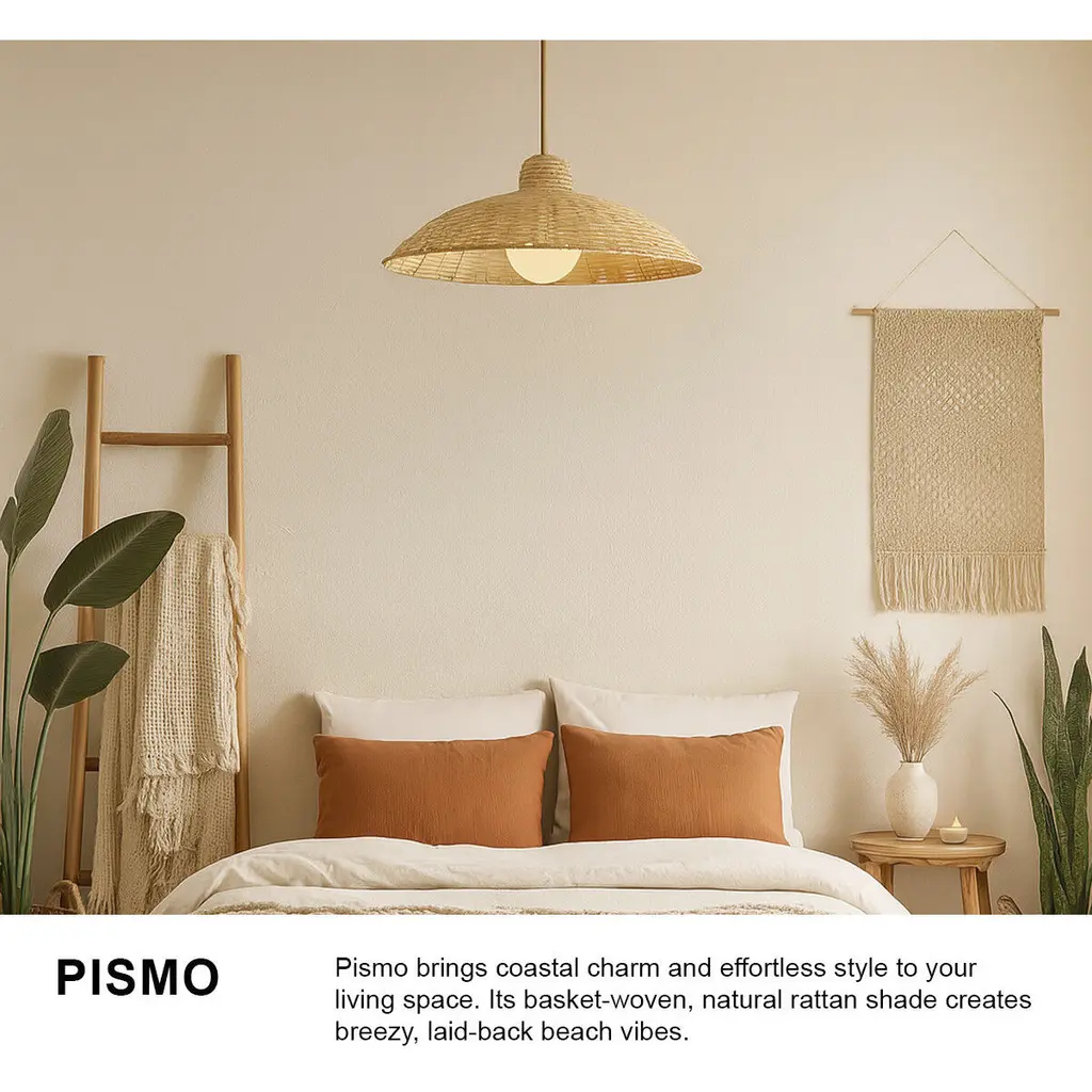 Pismo brings coastal charm and effortless style to your living space. Its basket-woven, natural rattan shade creates breezy, laid-back beach vibes.