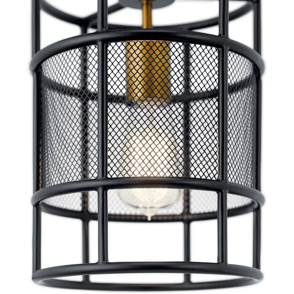 Two on-trend finishes deliver sleek industrial-era style on this Piston 1 light mini pendant. Natural Brass accents add the shine, while a black mesh cage forms the structure.