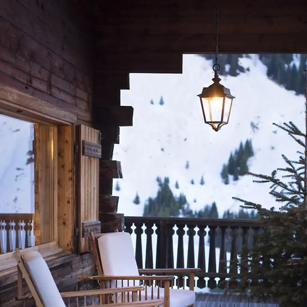 The Place Des Vosges Evolution Outdoor Pendant from Roger Pradier handsomely combines transitional and farmhouse aesthetics. It is built with durable aluminum to withstand ever-changing outdoor weather conditions. The framework is nicely tapered at the end, drawing your eye toward the prim-shaped crown topped with an architecturally styled ornamentation secured by a ring attached to a chain and ceiling canopy. Resting behind a PMMA shade is an LED that brilliantly illuminates this sloped ceiling adaptable fixture from France.