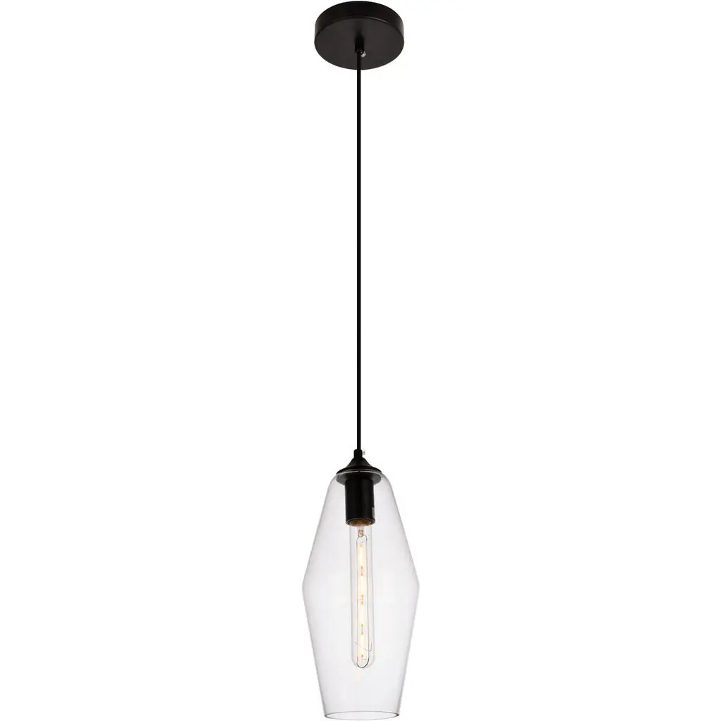 Placido 1 Light 6 Inch Black And Clear Pendant Ceiling Light