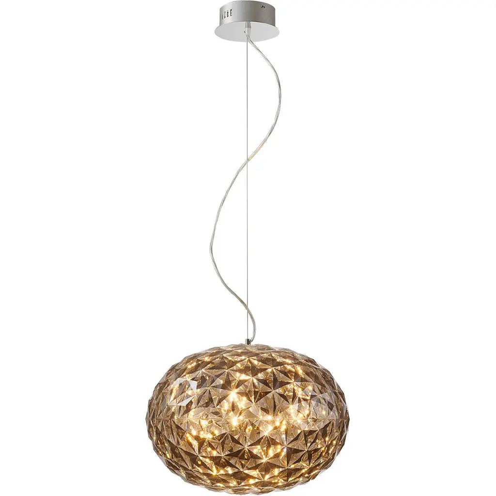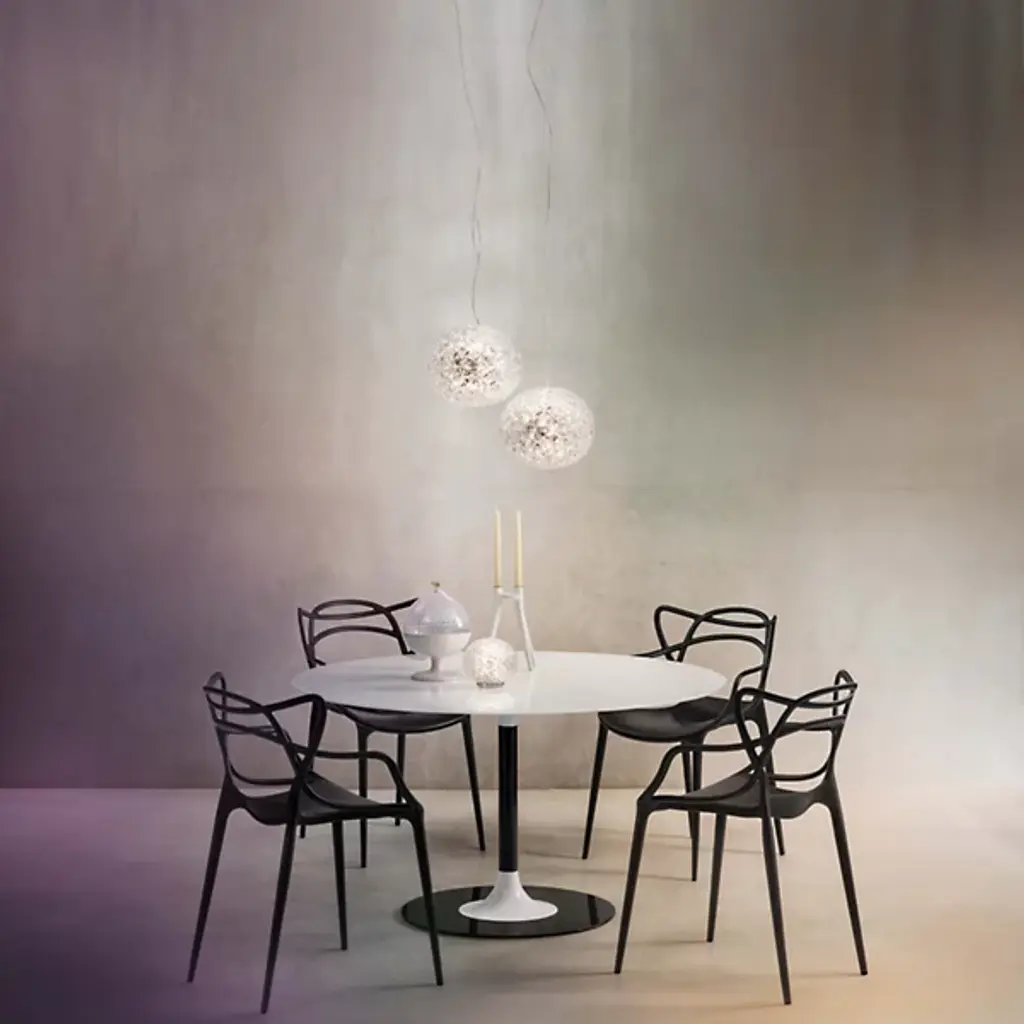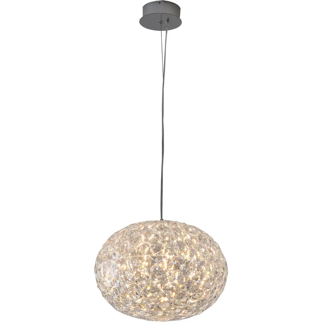 Go extra-galactic with the glittering glory the Planet LED Pendant from Kartell. Suspended from above by a dome-shaped pendant, this Italian-made design springs from the mind Tokujin Yoshioka, sending down a slim wire to LED lamping set in a rounded, faceted globe shade. Excellent as a single fixture or as a matched set, the geometric surface patterns on the shade’s surface blunt bright glare to all sides, sending out a sparkling ambiance around the fixture.