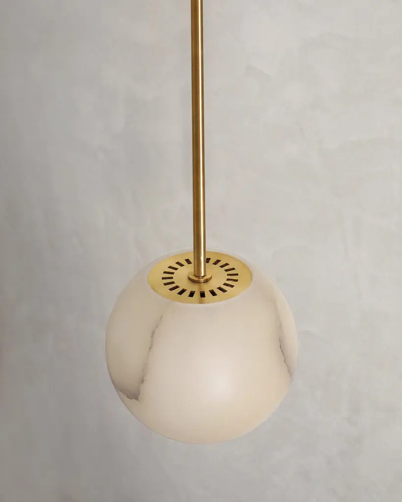 Planette tube 18 pendant by ContainDimensions: Ø 18 x H 100 cm (custom lenght).Materials: Alabaster, brass.Also available in different finishes and dimensions (Ø10 cm / Ø16,5 cm / Ø18 cm / Ø22 cm x custom length). Please contact us.All our lamps can be wired according to each country. If sold to the USA it will be wired for the USA for instance.“You are where you live” So, we decided to live in Mallorca. We are Mauricio Obarrio and Juan Peralta and Contain is our lighting and furniture design studio.This collection is the result of the collaboration between our studio, local artisans and the industrial sector; where creativity and simplicity creates a unique synergy and generates a narrative between the materials used and the pieces created.Our mission is to deliver artisan crafted, highly engineered, sophisticated yet simple lighting design solutions. Our studio's inspiration is fueled by an obsession with natural materials such as brass, glass, and hardwoods along with a love for artisan craftsmanship.