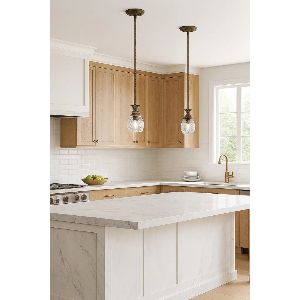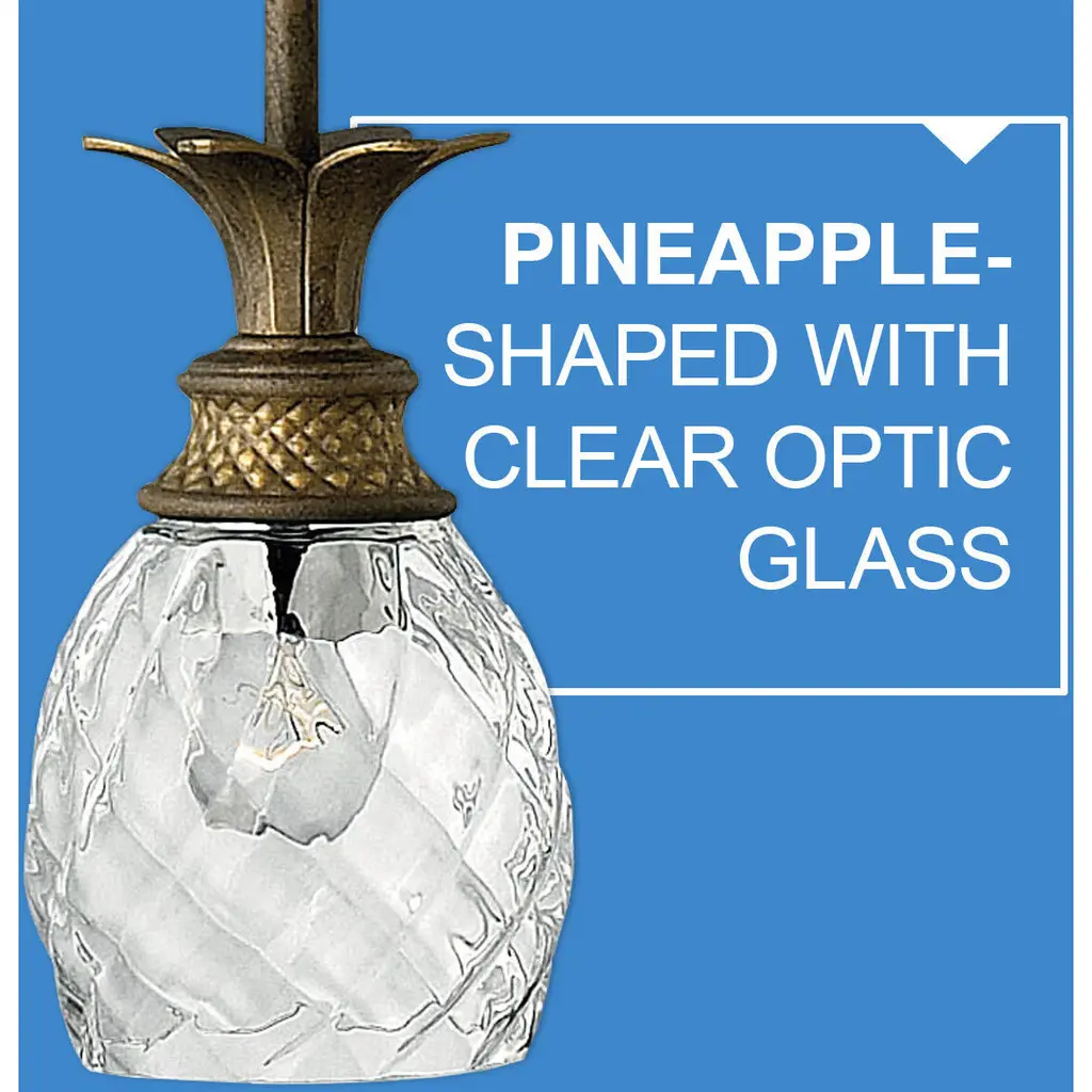 A Hinkley classic, the ornate Plantation collection features exceptional pineapple-shaped, clear optic glass that makes a noble statement. The elaborate, decorative cast detailing is accentuated by its lush finish.