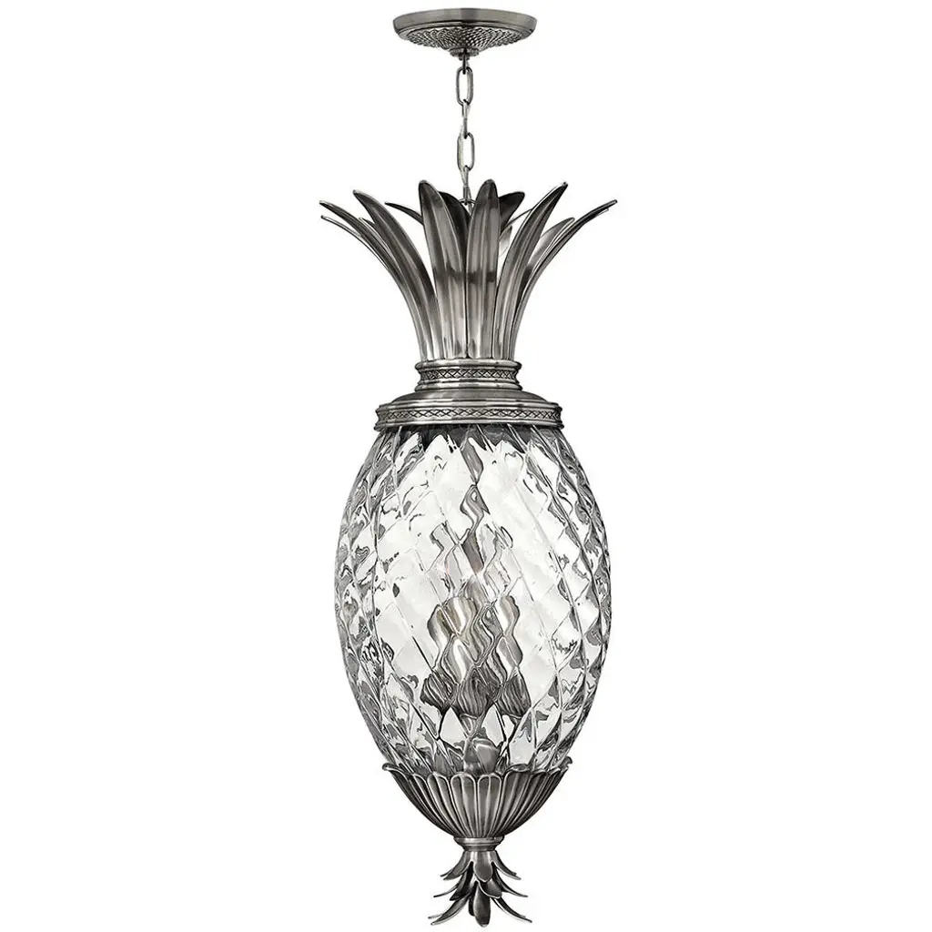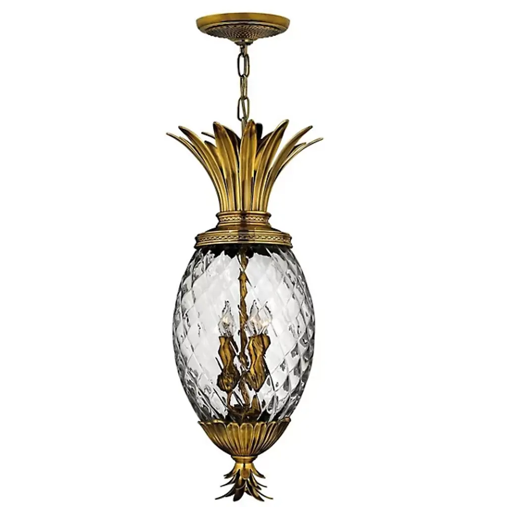 A tropical beauty--and one in a series of Pineapple Pendants from Hinkley. The Hinkley Lighting Plantation Pendant features a handcrafted pineapple-shaped clear optic glass shade and a selection of finishes. With its refreshingly sweet design, this pendant will creatively fit into a variety of transitionally-styled spaces, including foyers, sunrooms and kitchens.