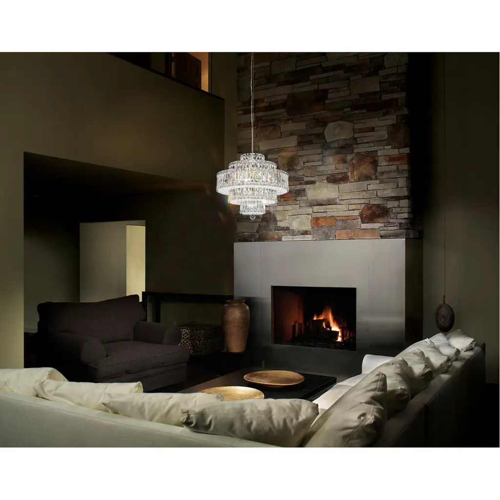 Plaza 22 Light Stainless Steel Pendant Ceiling Light In Optic, Adjustable Height