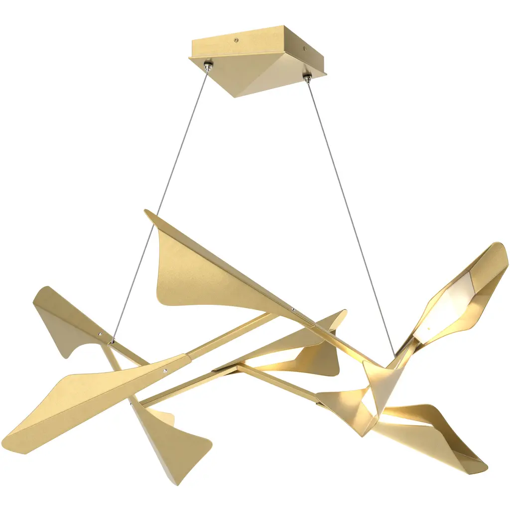 A close cousin to the signature Quill Pendant, the Plume 8-Light Pendant features 8 metal "plumes", each shielding an LED lighting element. With the option for a 2-toned look, the Plume may be ordered with the core in one finish, and the "plumes" in another accent. The Plume 8-Light Pendant features a circular formation with a 37.6" diameter. Also available as a 5-Light (vertical) and a larger 12-Light (circular) pendant.
