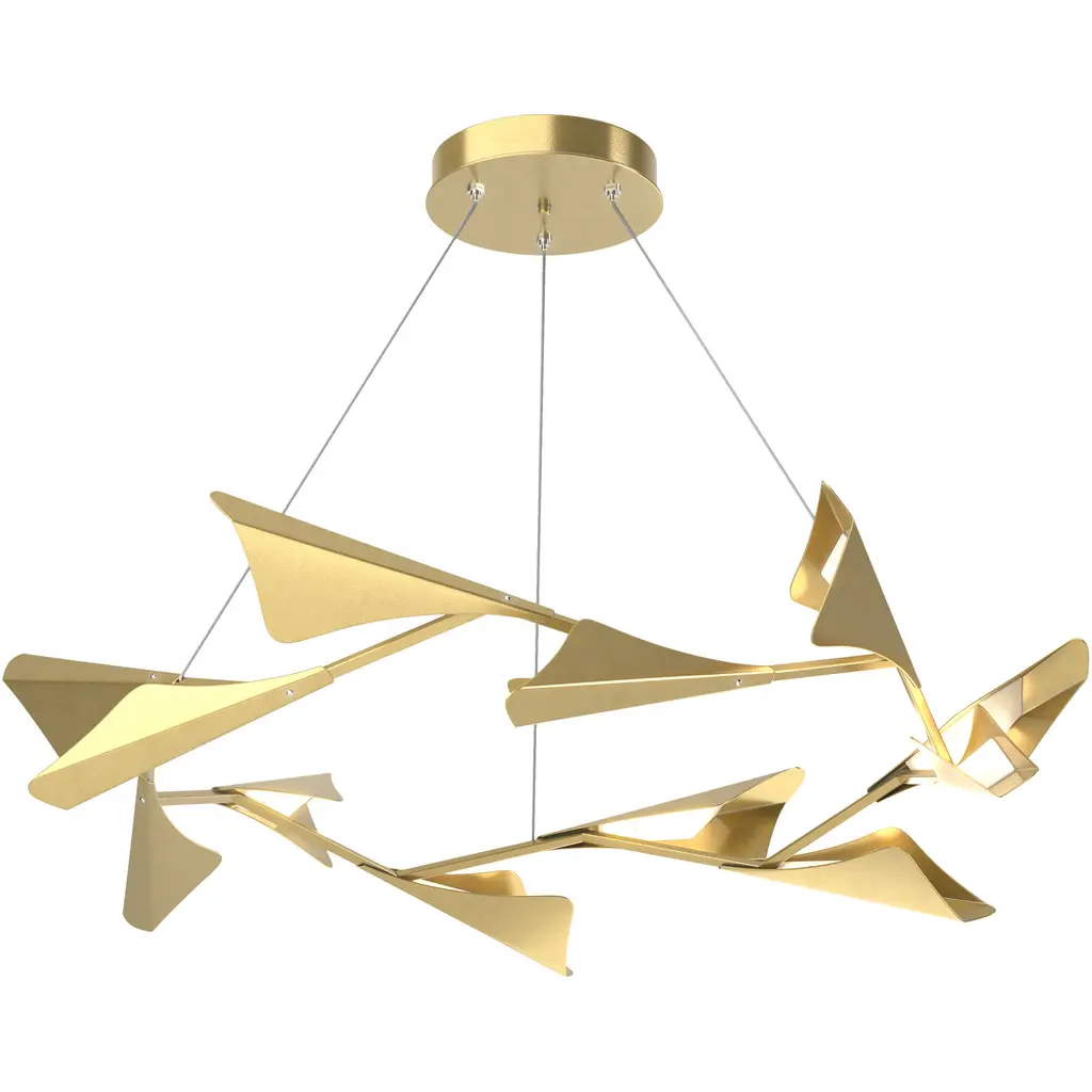 Inspired by the top-selling Quill Collection, the new 2020 Plume Collection features more substantially sized "plumes" that shield individual LED lighting elements. The 12-Light Plume is over 4 ft. in diameter, forming a stunning circular hanging pendant. Available as a two-toned option, one finish is selected for the core, and the same or another finish may be selected for the metal "plumes" to create a piece that perfectly suits its environment. Also available as a 5-Light (vertical) and an 8-Light (circular) pendant.