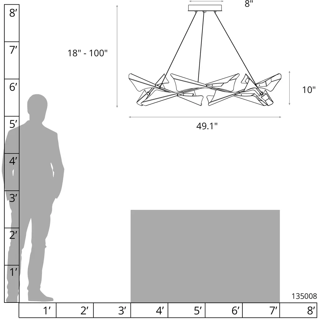 Plume Led 49.1 Inch Black And Soft Gold Pendant Ceiling Light In Black/soft Gold