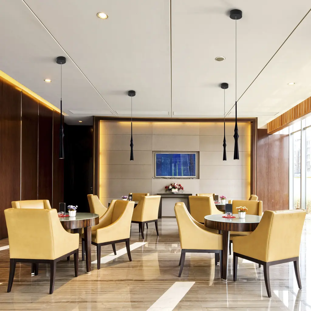 From VONN's Polaris Series, the VMP26710BL Integrated LED Pendant is a modern 5-inch fixture made from aluminum and acrylic, with a Black aluminum canopy and an Integrated LED Shade. Emitting a soft white ambient light at 3000 Kelvin, it offers adjustable height, dimmable functionality, and compatibility with sloped ceilings. With 555 Lumens brightness, an energy-efficient power consumption of 6 Watts, and CRI 83, this pendant combines style and efficiency for versatile and customizable illumination.