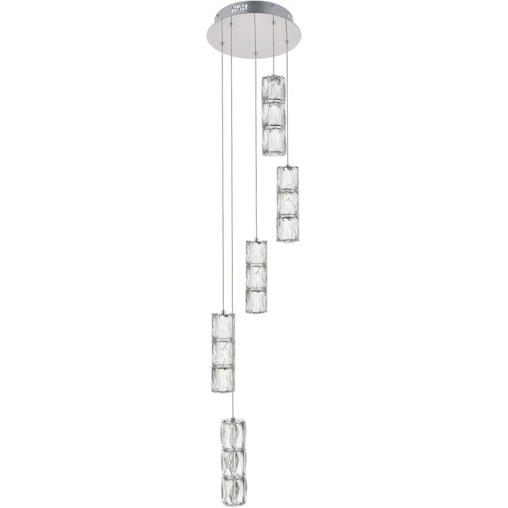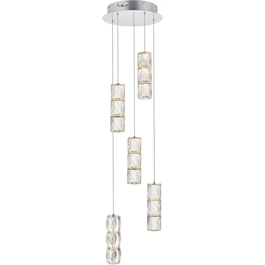The Polaris collection is the epitome of “cool” in lighting, because each of the fixtures has rectangular, elegant-cut crystals that look like ice cubes, gracefully suspended from a stainless-steel base with a bright chrome finish. Designed for rooms with higher ceilings, these fixtures are definitely stylistic attention-getters.