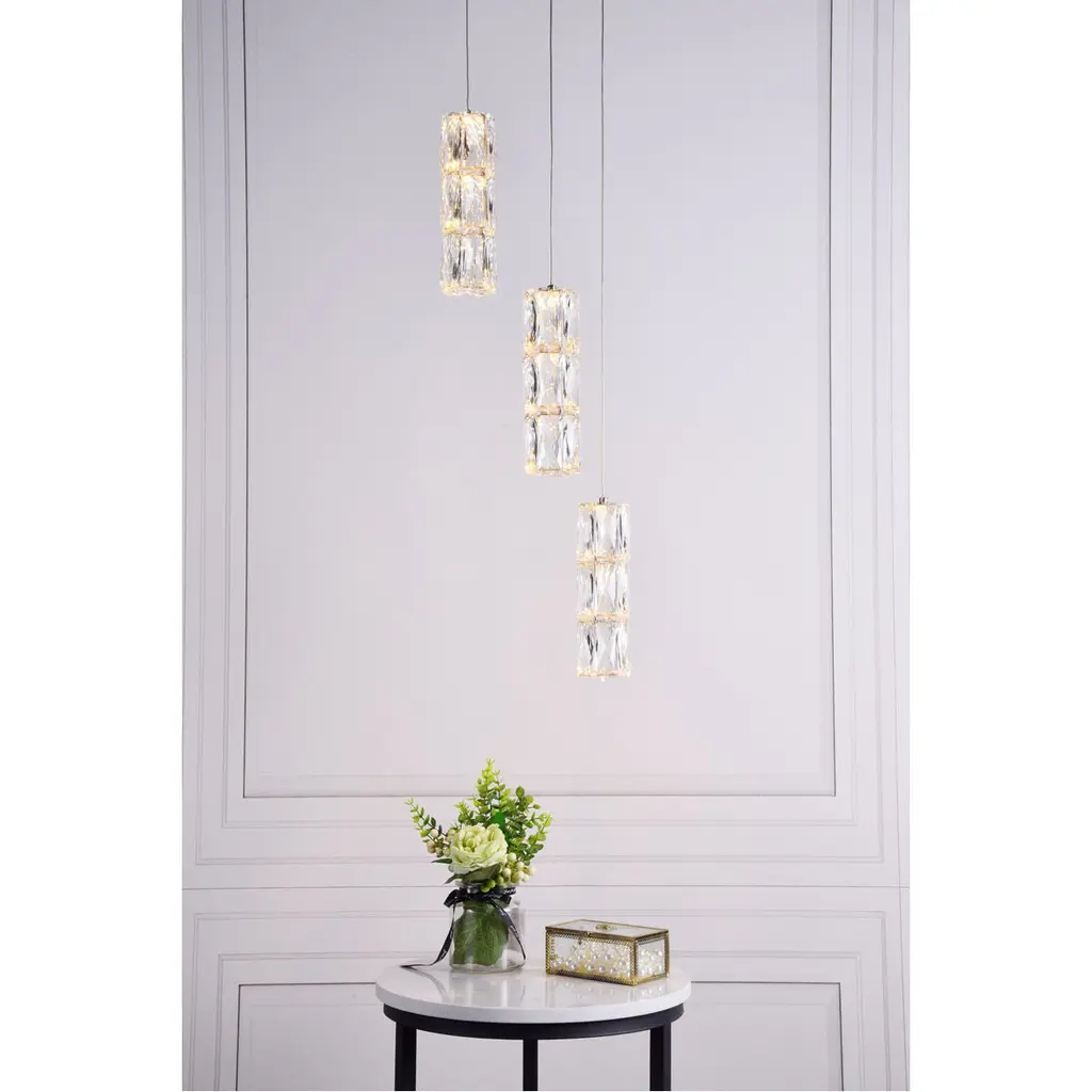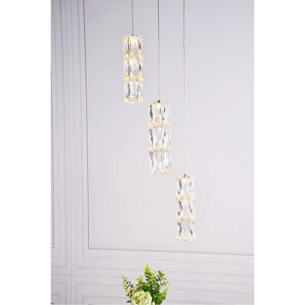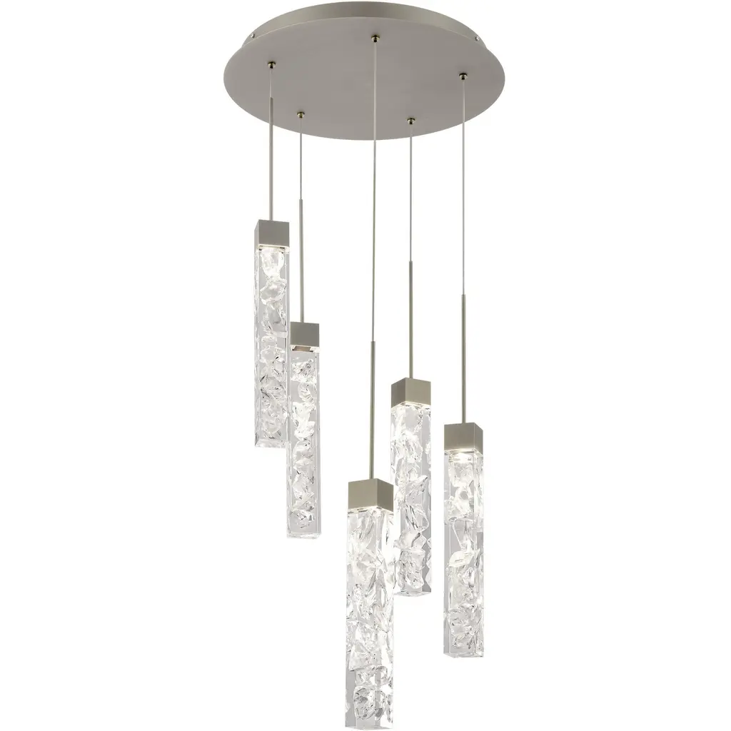 The Polaris collection is the epitome of “cool” in lighting, because each of the fixtures has rectangular, elegant-cut crystals that look like ice cubes, gracefully suspended from a stainless-steel base with a bright chrome finish. Designed for rooms with higher ceilings, these fixtures are definitely stylistic attention-getters.
