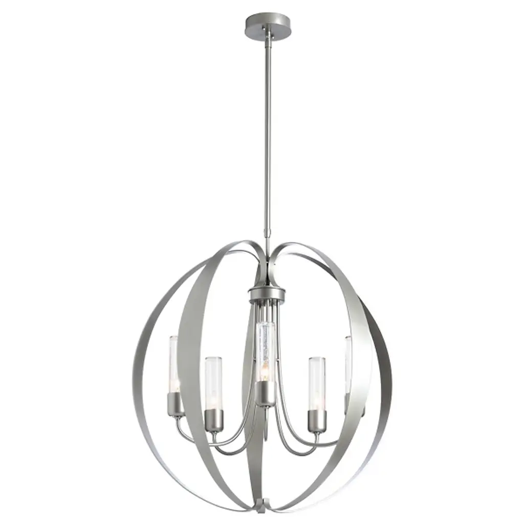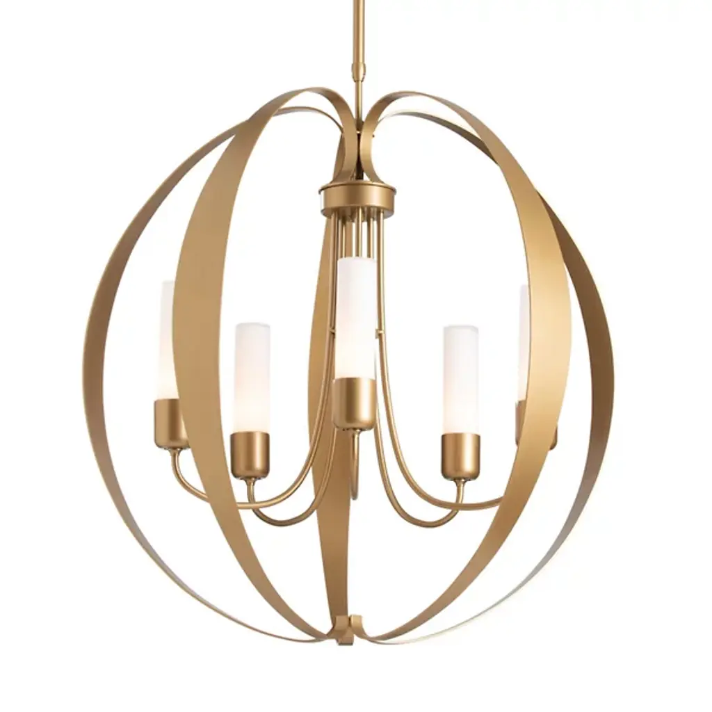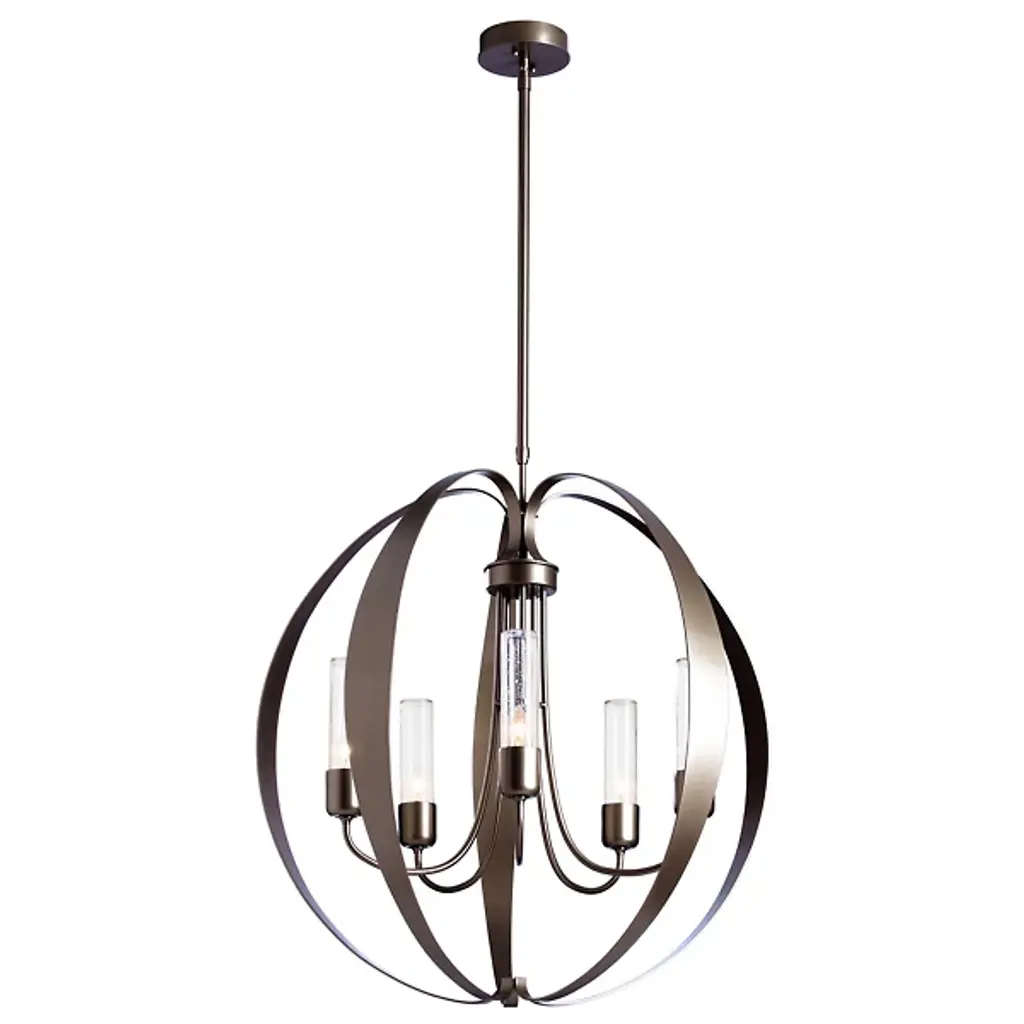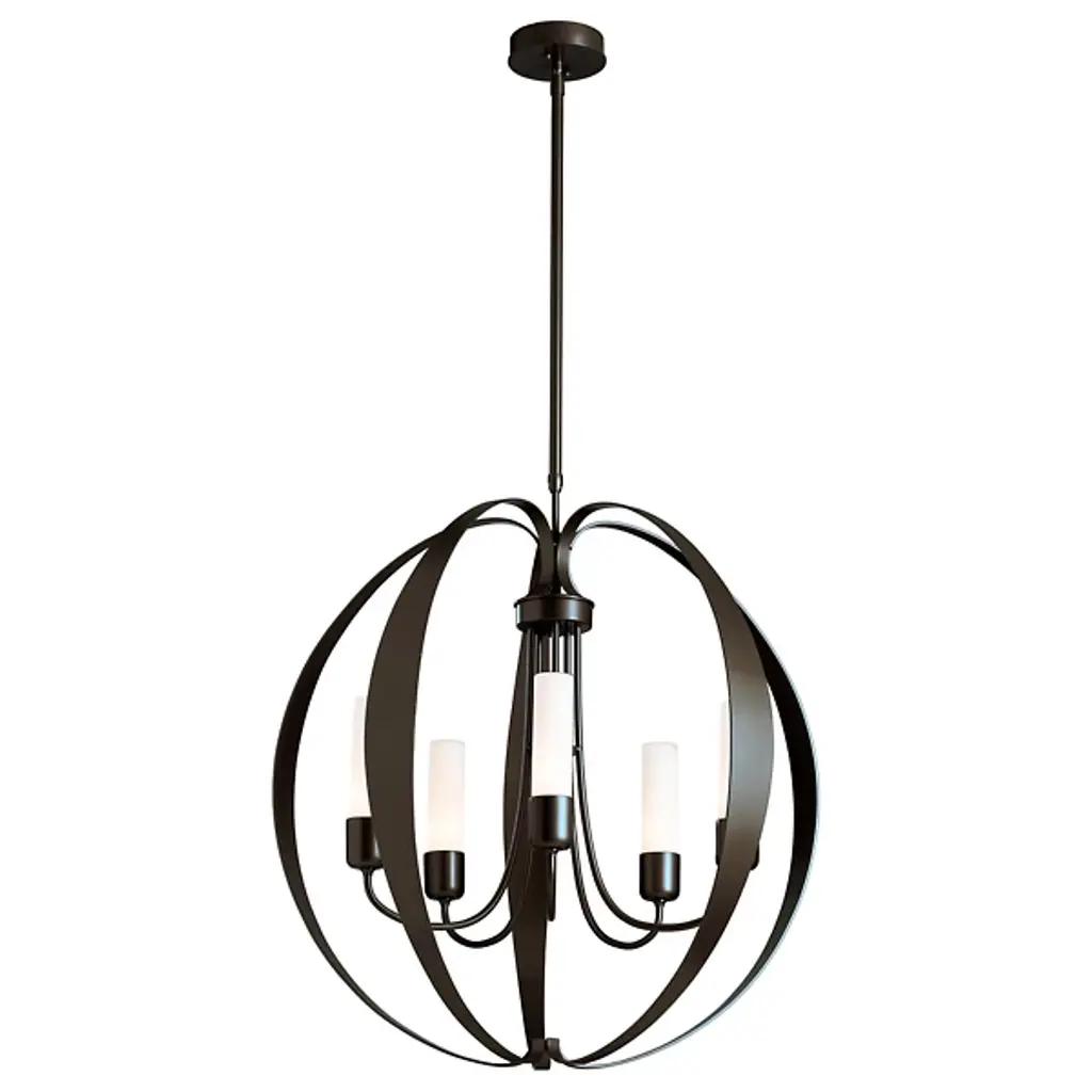 The Pomme Outdoor Pendant by Hubbardton Forge is an openly styled, durable, and delightful design that resembles its namesake with an apple-like form. Handcrafted, smoothly curved metal ribbons create an airy orb that a set of candelabras shine within. Set on an arrangement of arched arms, cylindrical glass shades add a lovely touch to this pendant. A robust outdoor coastal finish allows this elegant and contemporary piece to resist some of the harshest environmental conditions, bringing a bright touch to its surroundings throughout the year.