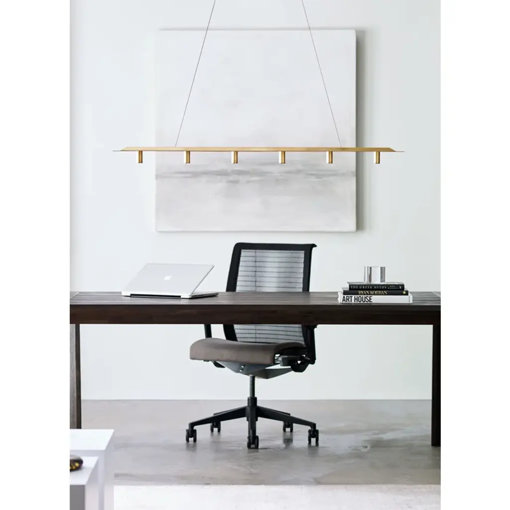 Inspired by the Ponte Skyscraper in Johannesburg, the Ponte Collection by Sean Lavin for Tech Lighting celebrates modern architectural design with LED lighting. The Ponte 50 Linear Suspension is generous in length but minimal in width at only 5 inches wide. Crafted with six evenly spaced light modules, Ponte 50 produces a punch of downward light. This fixture is great for dining rooms, conference rooms, large open areas, and hospitality.