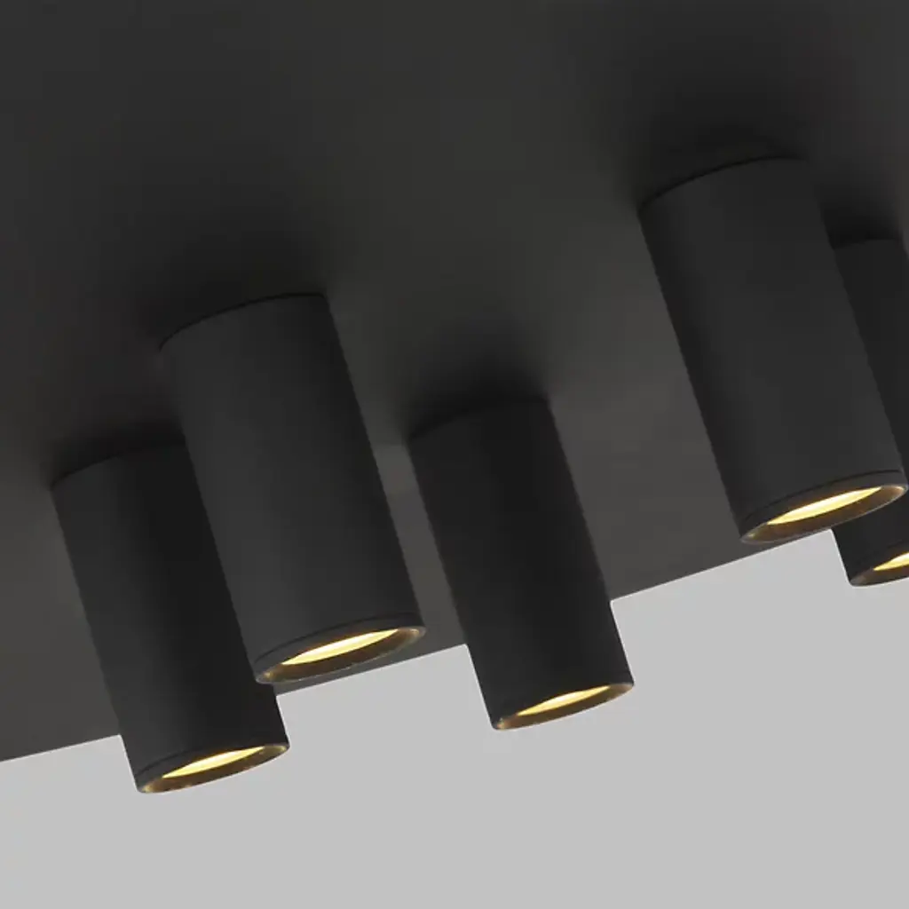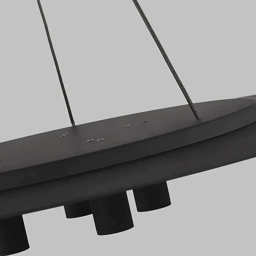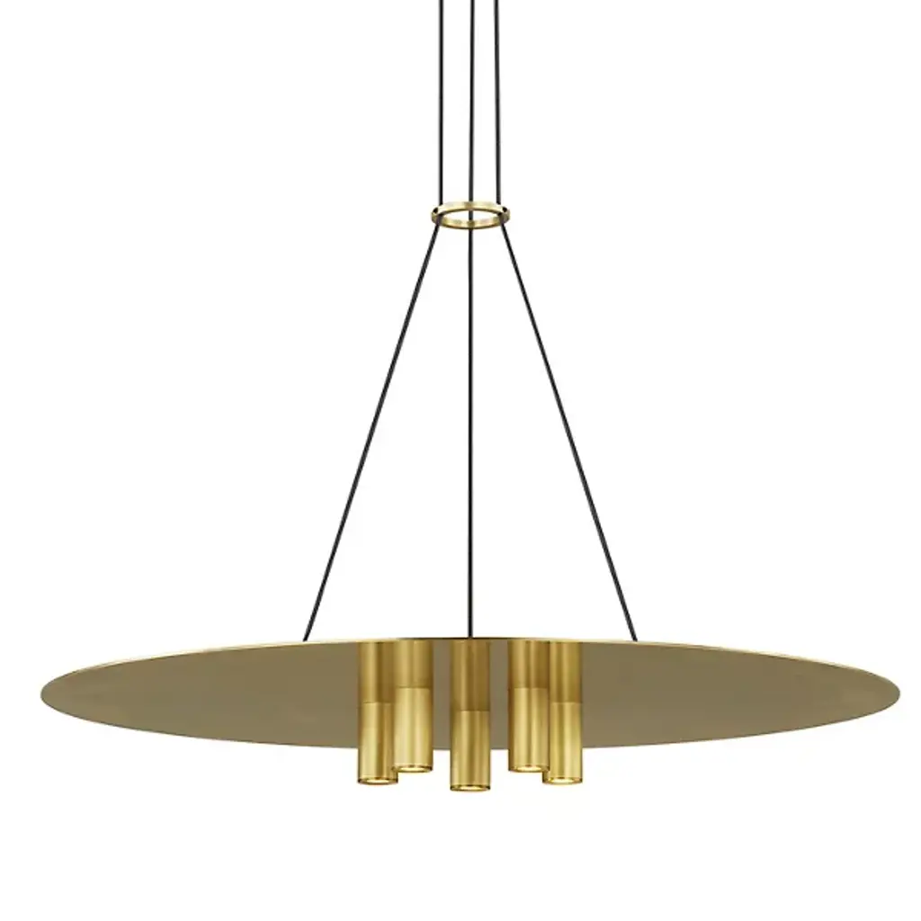 The Ponte LED Pendant by Visual Comfort Modern, formerly known as Tech Lighting, celebrates modern architecture with a clean, contemporary look. Inspired by and named after the Ponte Skyscraper in Johannesburg, this design is suspended by a set of slender cables that run through a minimal collar, holding up a sleek, circular disk that a series of cylindrical metal shades are mounted on. Offering an even, energy-efficient layer of illumination down onto surroundings, this design brings a balanced mix of form and function to rooms.