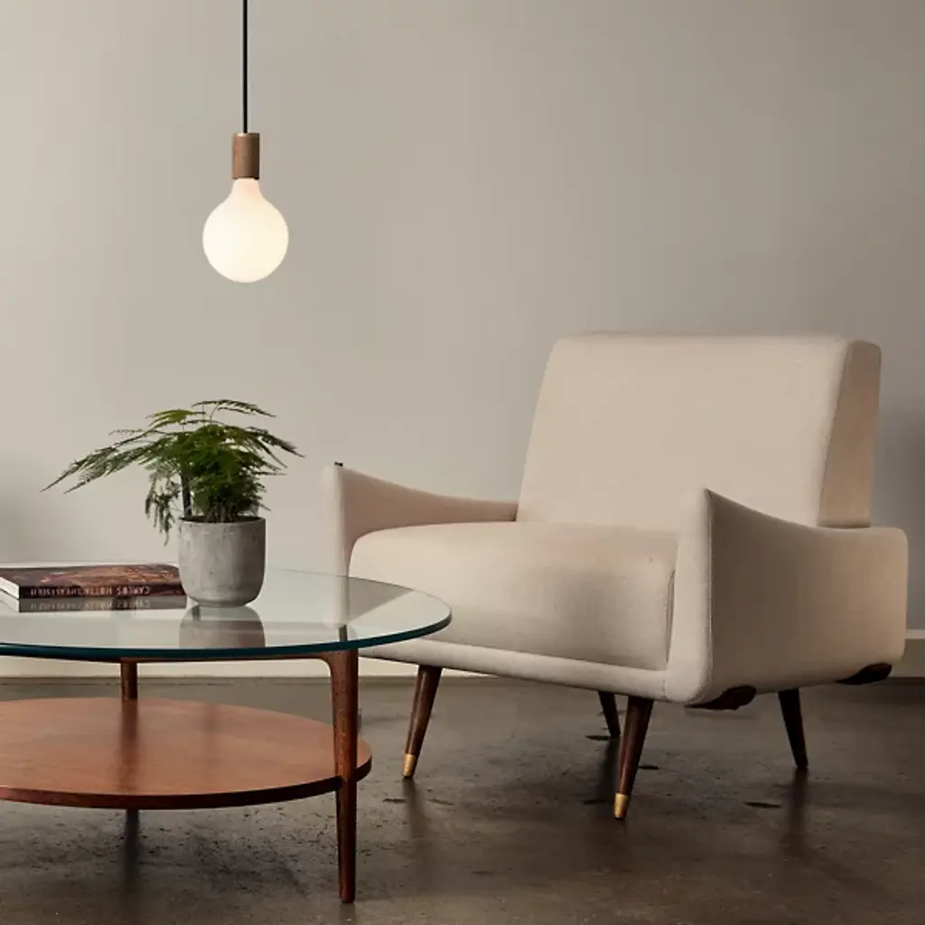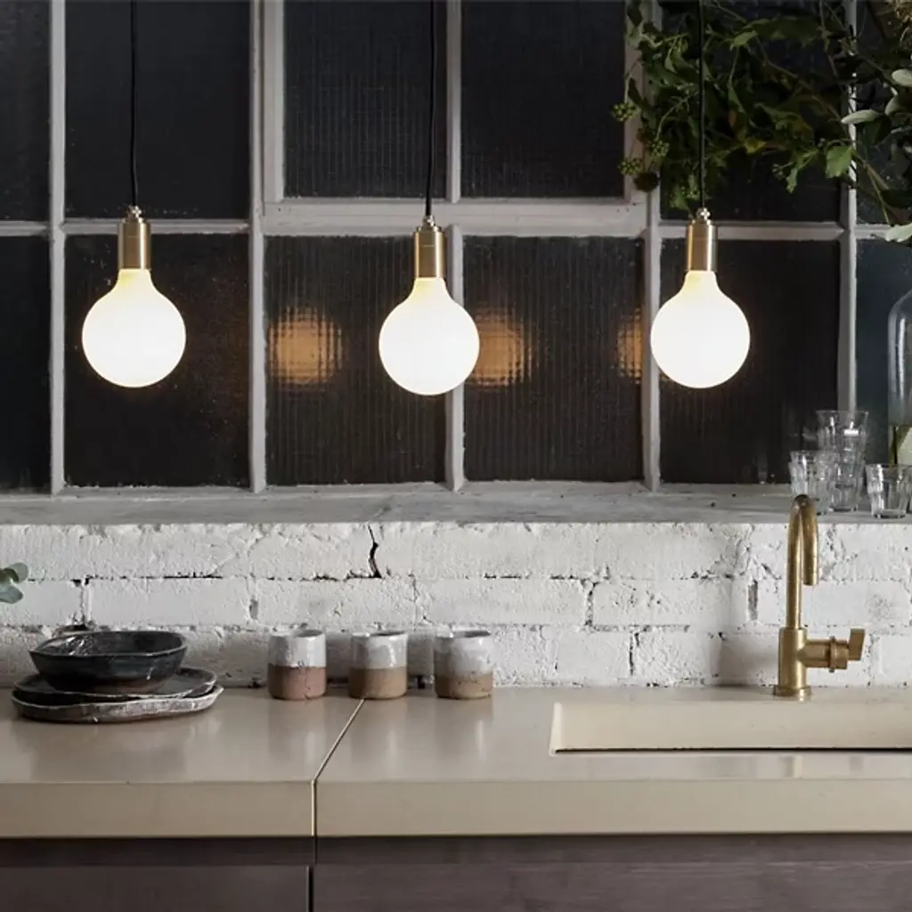 The Porcelain Single Pendant by Tala is a simple, sophisticated design. Embracing Tala’s founding premise that good design can help mitigate climate change, energy-efficient technology is combined with a smooth, individually mouth-blown light bulb that is paired with a minimal socket and braided cord. The Porcelain family is centered around four distinctive silhouettes based on primary geometric forms and effortlessly elevates the humble light bulb into a decorative item that brings a warm, welcoming layer of light to spaces.