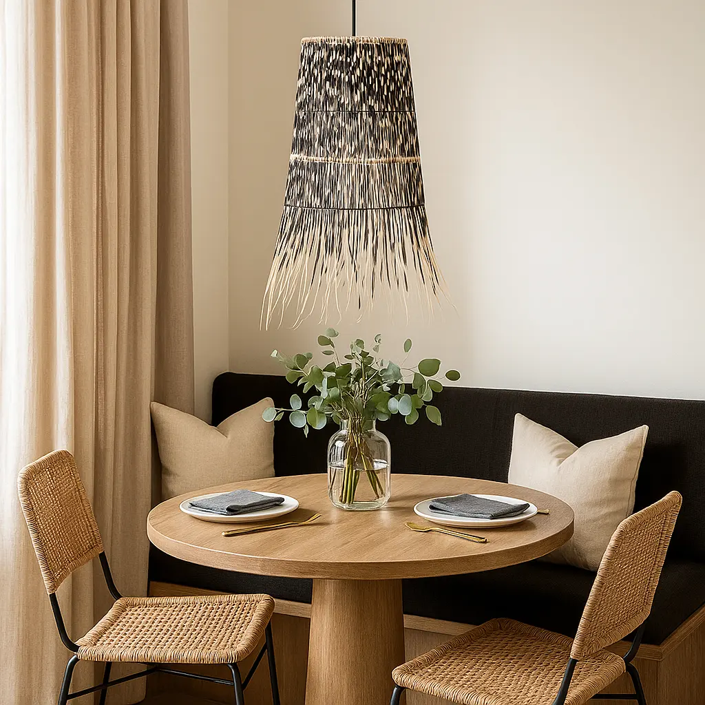 Porcupine Quill Pendants are made by hand in Cape Town, South Africa. Crafted from genuine porcupine quill, resulting in a unique and eye-catching style. All hard-wired lighting is UL-listed for dry locations. Not suitable for outdoor use. 9’ of cord supplied with each pendant.