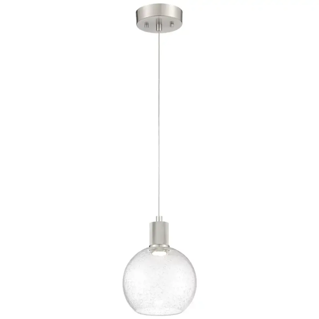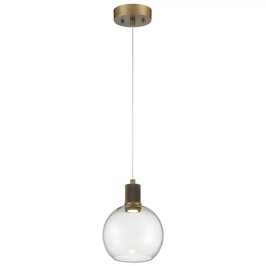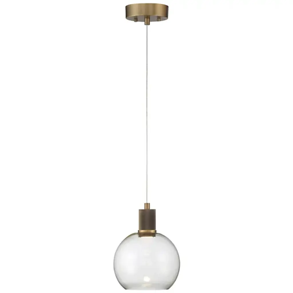 The Port Nine Burgundy LED Mini Pendant by Access Lighting is made with a sense of craftsmanship that emanates from its elegant and understated sense of style. Made using clear glass with a brushed metal frame, this light is designed with rounded edges to bring to life its centerpiece element—a round glass globe hurricane that is inspired by the iconic burgundy wine glass. It's a marvel to behold when displayed over kitchen islands, entryways, staircases, and more.