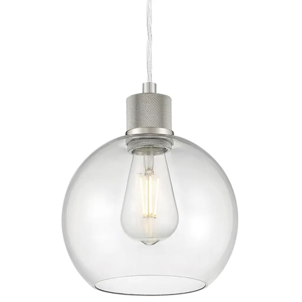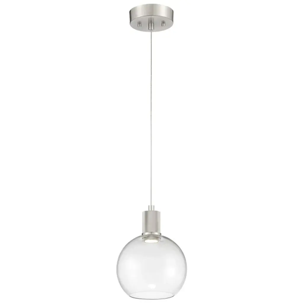 The Port Nine Burgundy LED Mini Pendant by Access Lighting is made with a sense of craftsmanship that emanates from its elegant and understated sense of style. Made using clear glass with a brushed metal frame, this light is designed with rounded edges to bring to life its centerpiece element—a round glass globe hurricane that is inspired by the iconic burgundy wine glass. It's a marvel to behold when displayed over kitchen islands, entryways, staircases, and more.