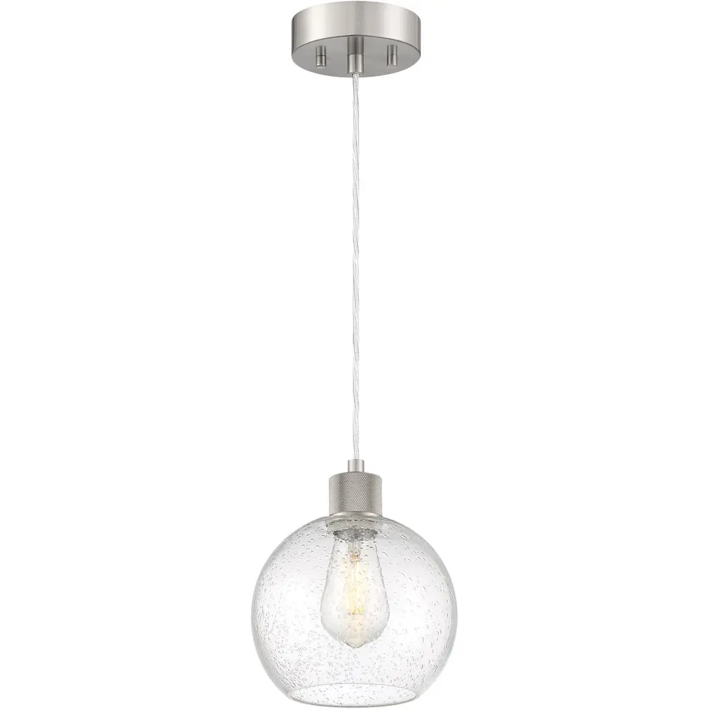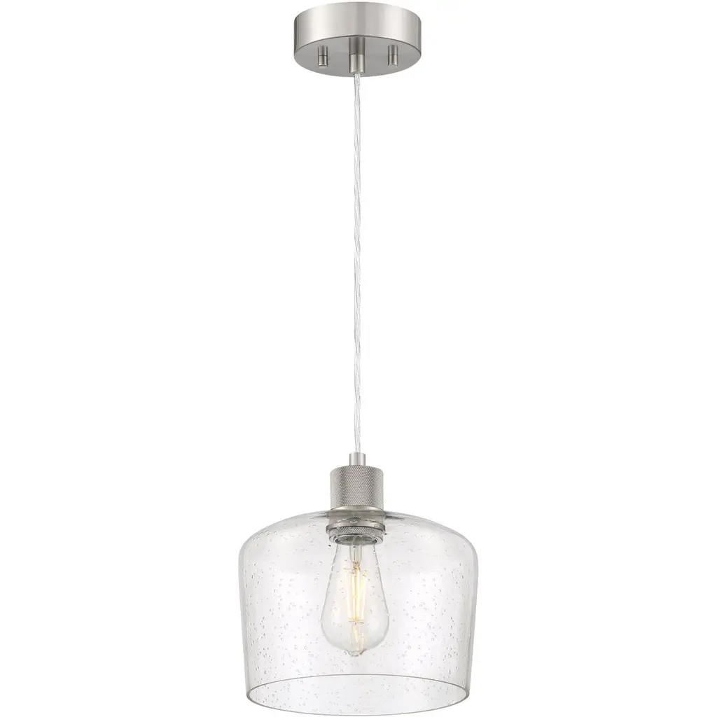 Port Nine Martini LED Pendant - Brushed Steel - Seeded Glass - Dedicated LED