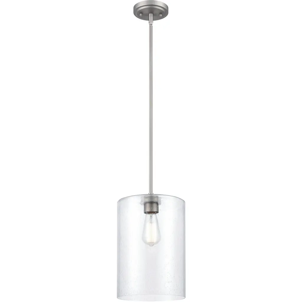 Port Nine Chardonnay LED Pendant - Brushed Steel - Seeded Glass - Dedicated LED