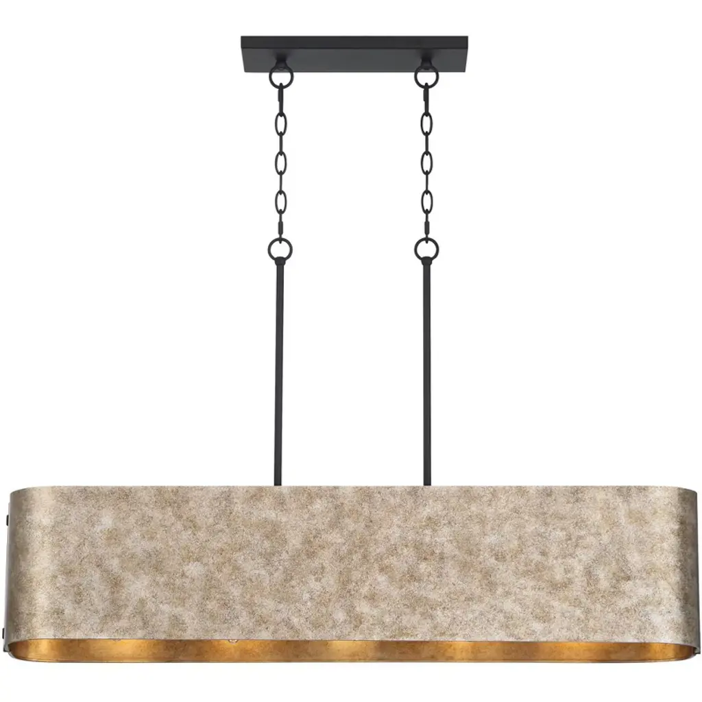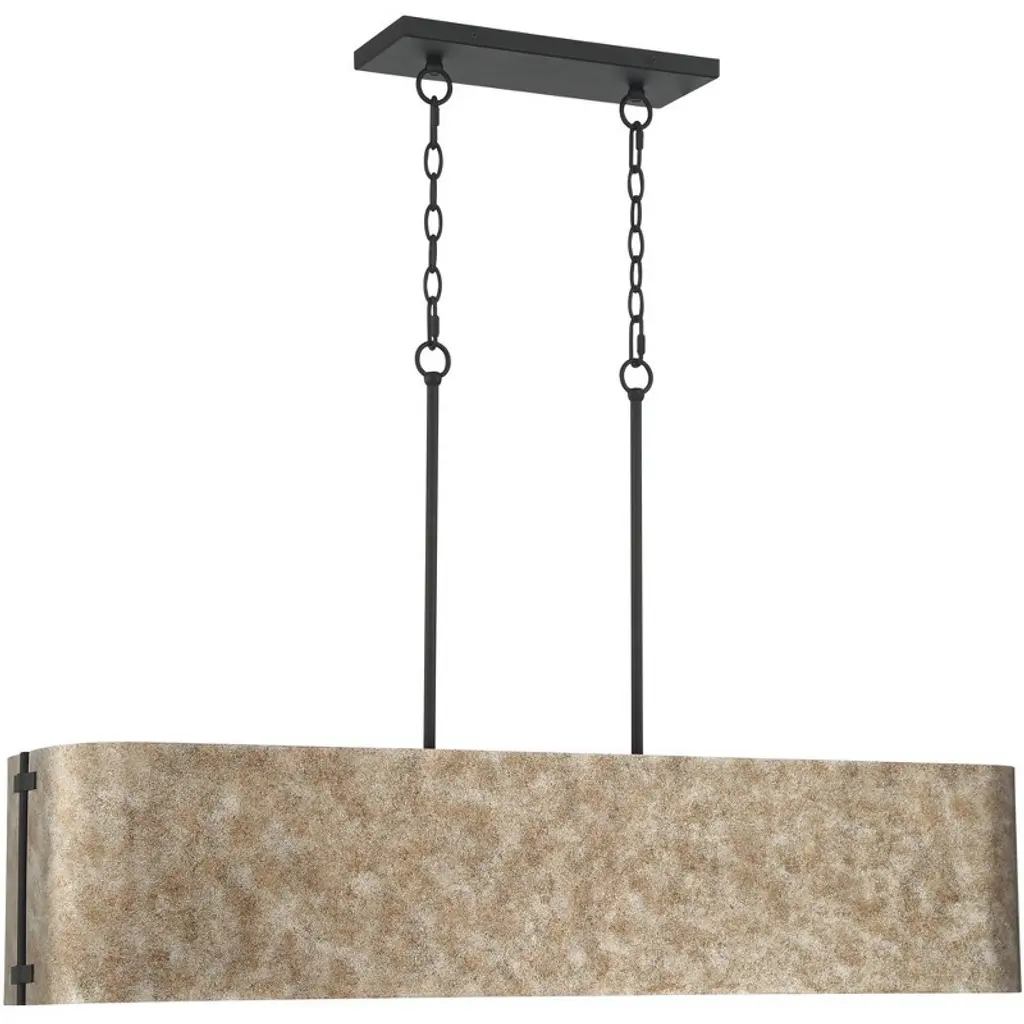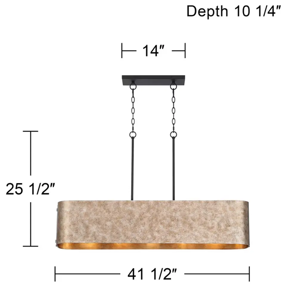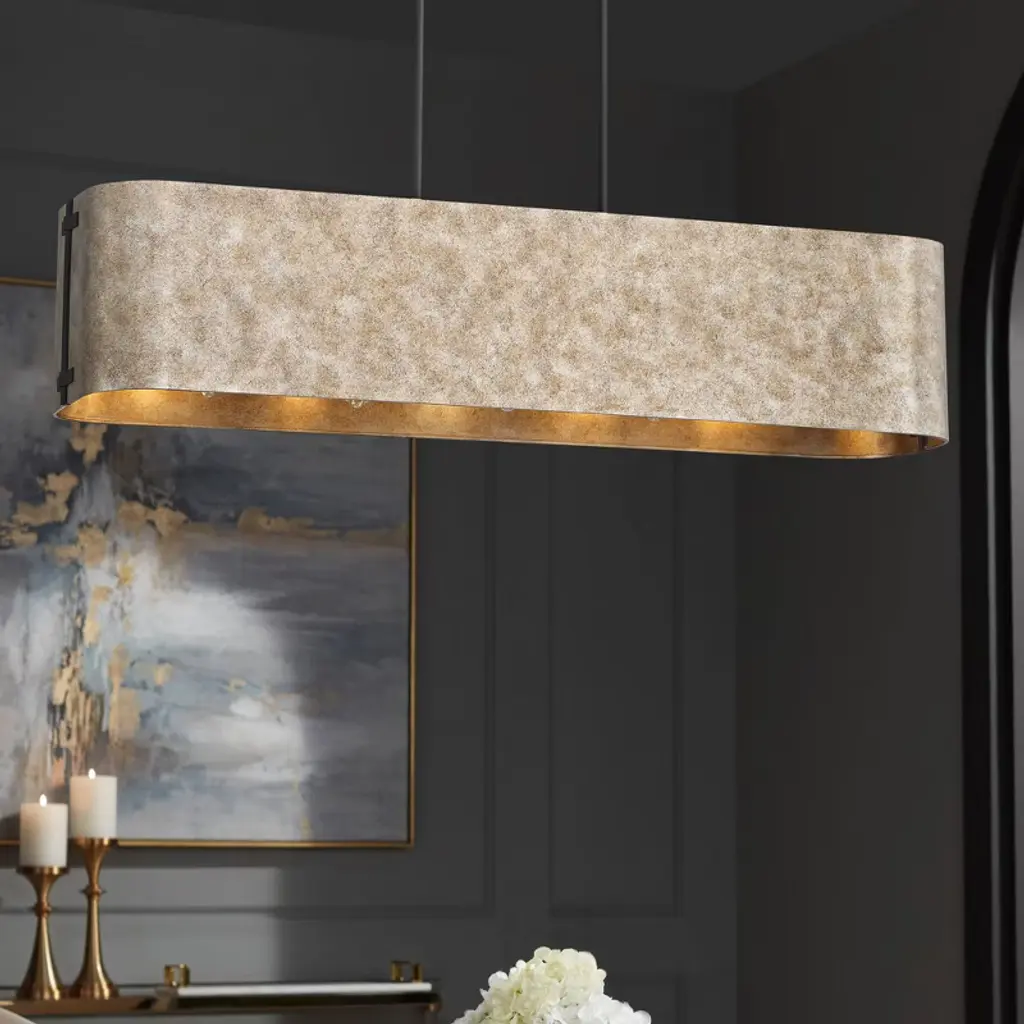 Bring a new look of sophistication to your kitchen or dining room decor with the Julian rustic industrial linear pendant. Ideal for use over long counter or table surfaces, the design features a wide rectangular form with gently rounded ends in a rustic silver finish. Canopy and downrods feature a black finish to complement any space.